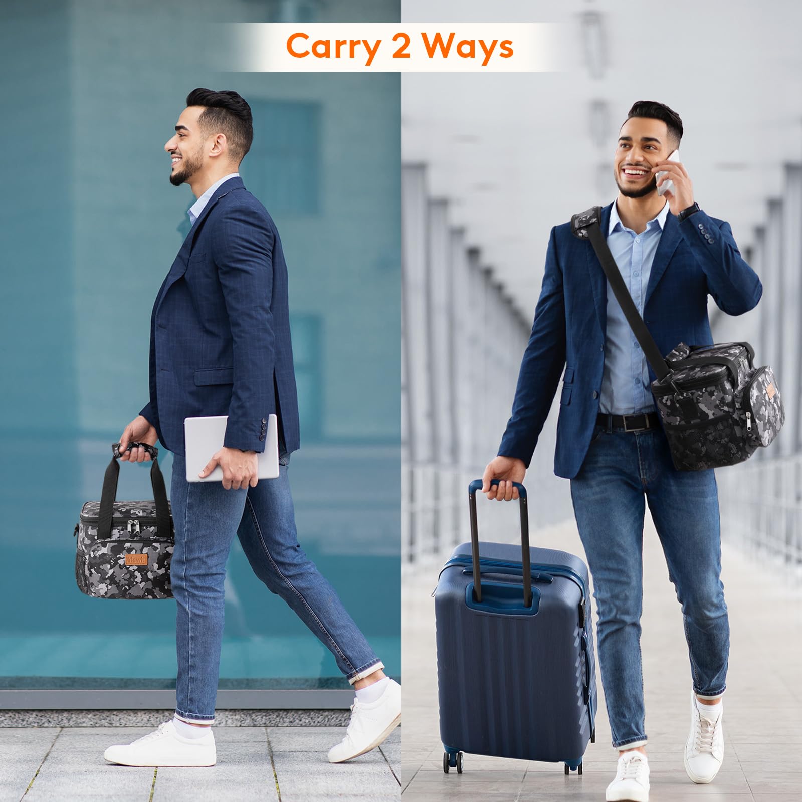 Convenient & Portable: The lid of this cooler lunch bag can be opened up widely with strong two-way zippers, which means you can put your lunch container into the bag and take out of the bag vertically. Prevent liquids from leaking out of the container and soiling inside the bag. Tough handles and shoulder strap allows you to carry it easily. Moreover, the front and side extra pocket can hold small items like keys and earbuds