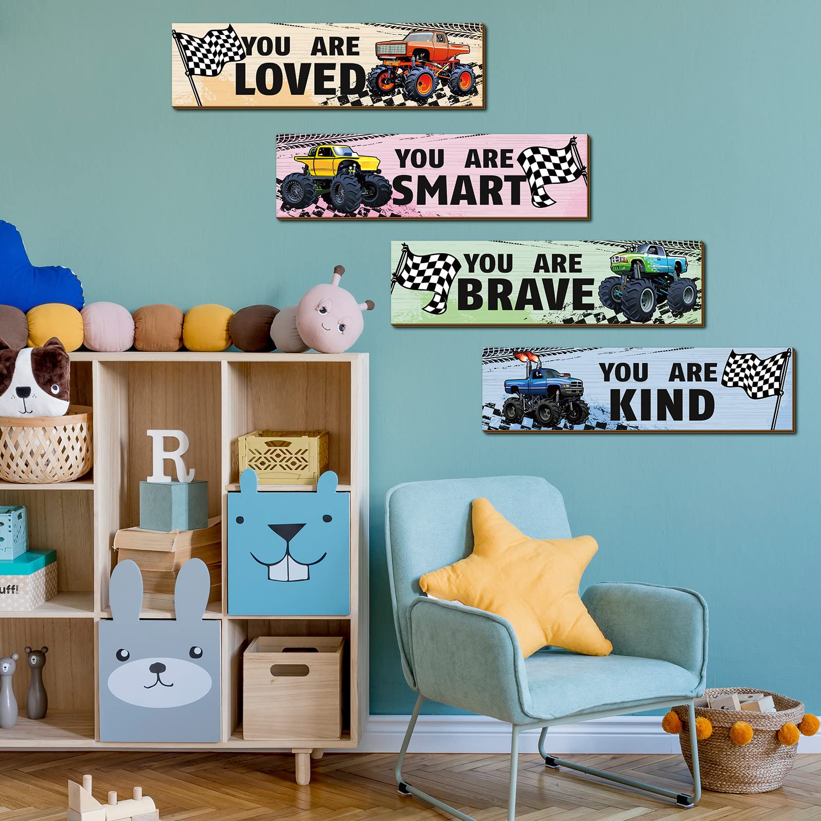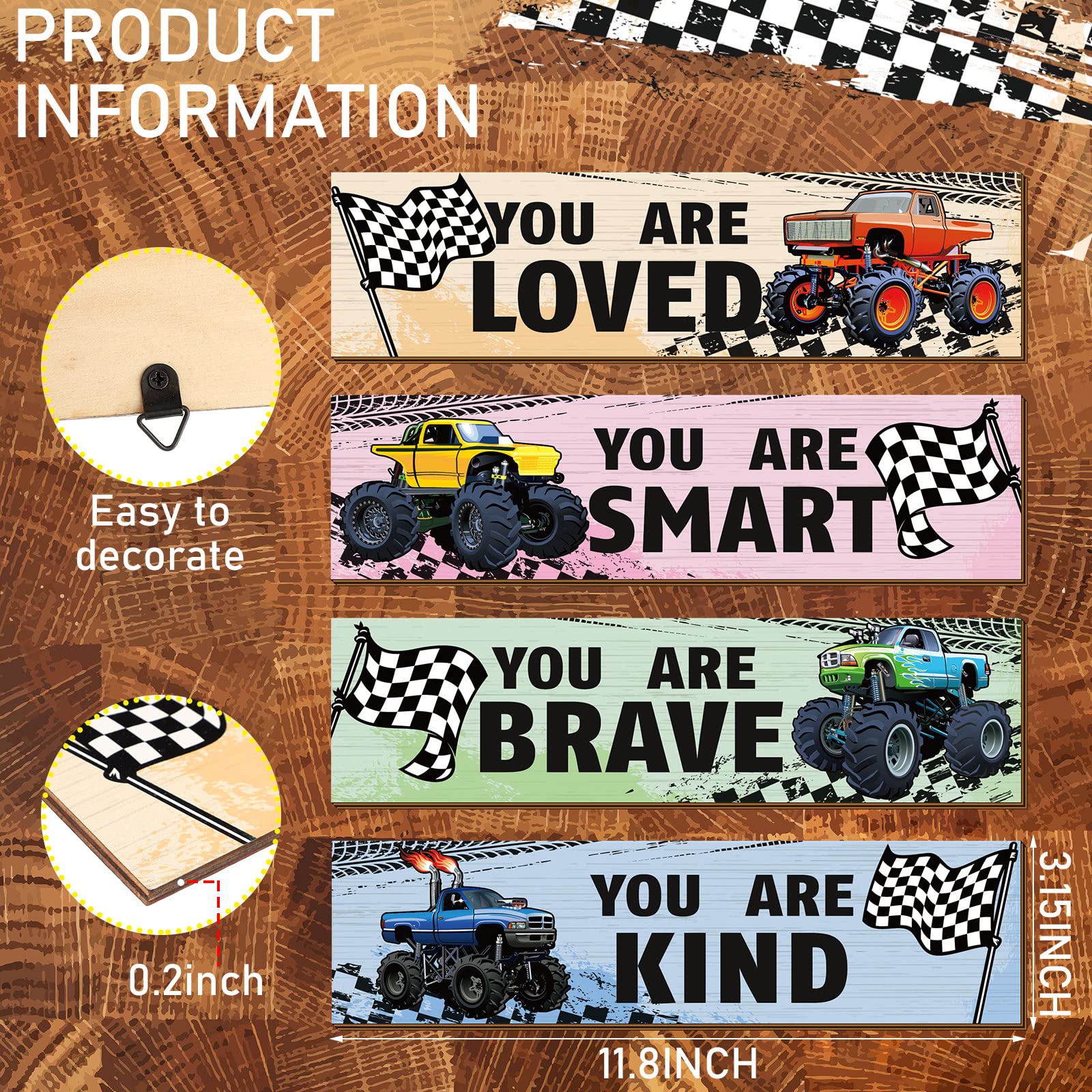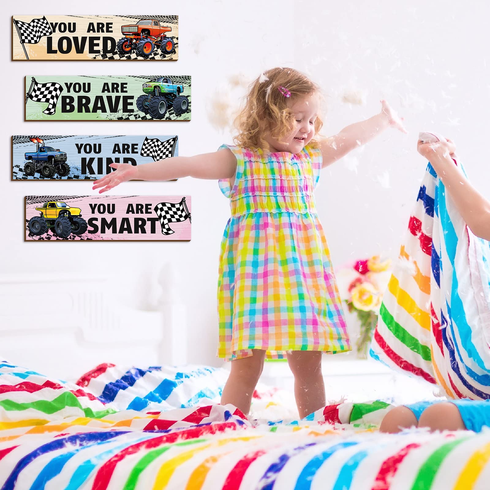 Truck Room Decor: the package comes with 4 pieces of wooden wall decors, they are printed in 4 different styles with various positive words, each style has 1 piece, and each is equipped with hanging hooks on the back, you can apply them to decor your bedroom wall
