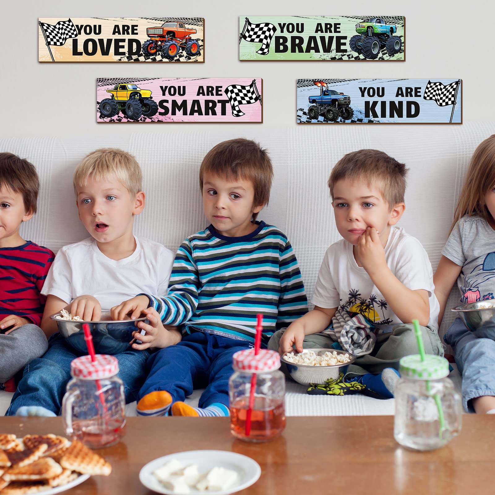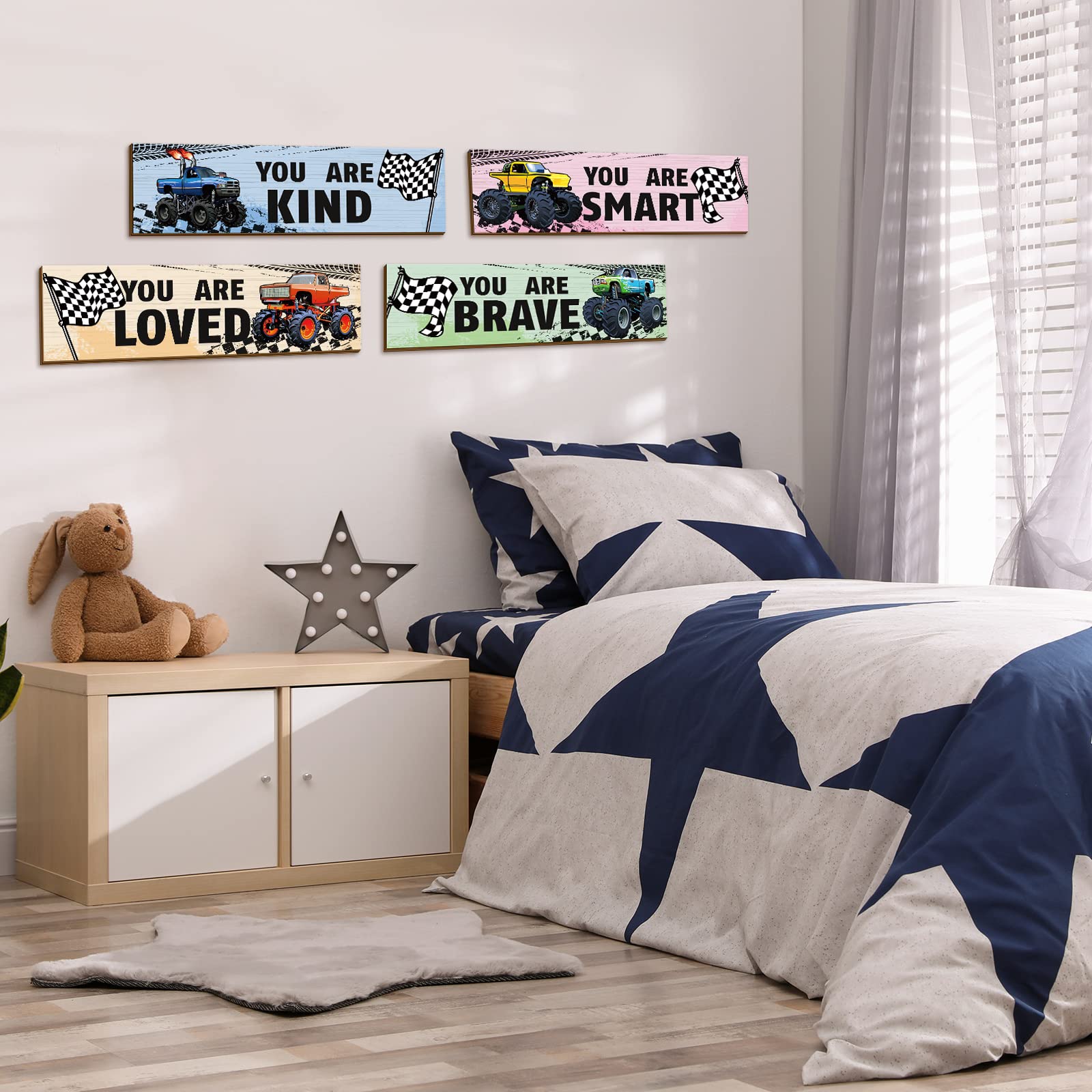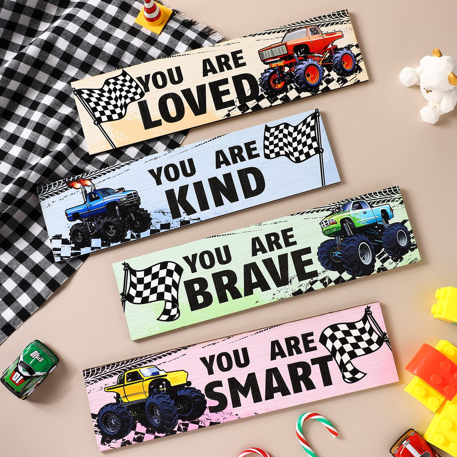 Truck Room Decor: the package comes with 4 pieces of wooden wall decors, they are printed in 4 different styles with various positive words, each style has 1 piece, and each is equipped with hanging hooks on the back, you can apply them to decor your bedroom wall