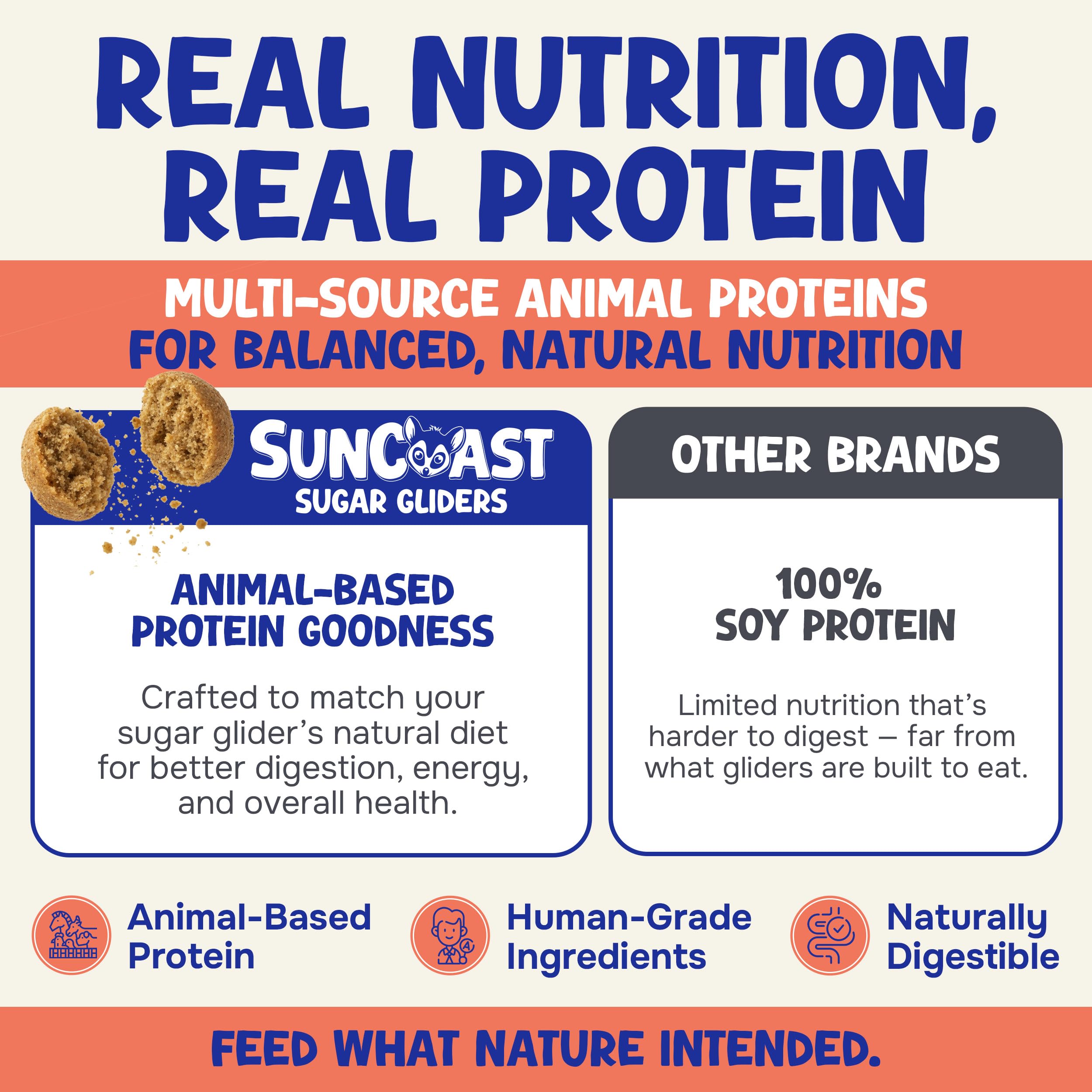 TRUSTED SINCE 1999: Suncoast Sugar Gliders has been making this same recipe for over 20 years. The pellet form stays fresh longer than powdered foods and makes feeding time cleaner. Thousands of glider families rely on this daily, and vets recommend it because the ingredients are human-grade quality. Each bag provides consistent nutrition that pet owners trust for their beloved sugar gliders, ensuring reliable energy levels and optimal health outcomes for these special exotic companions.