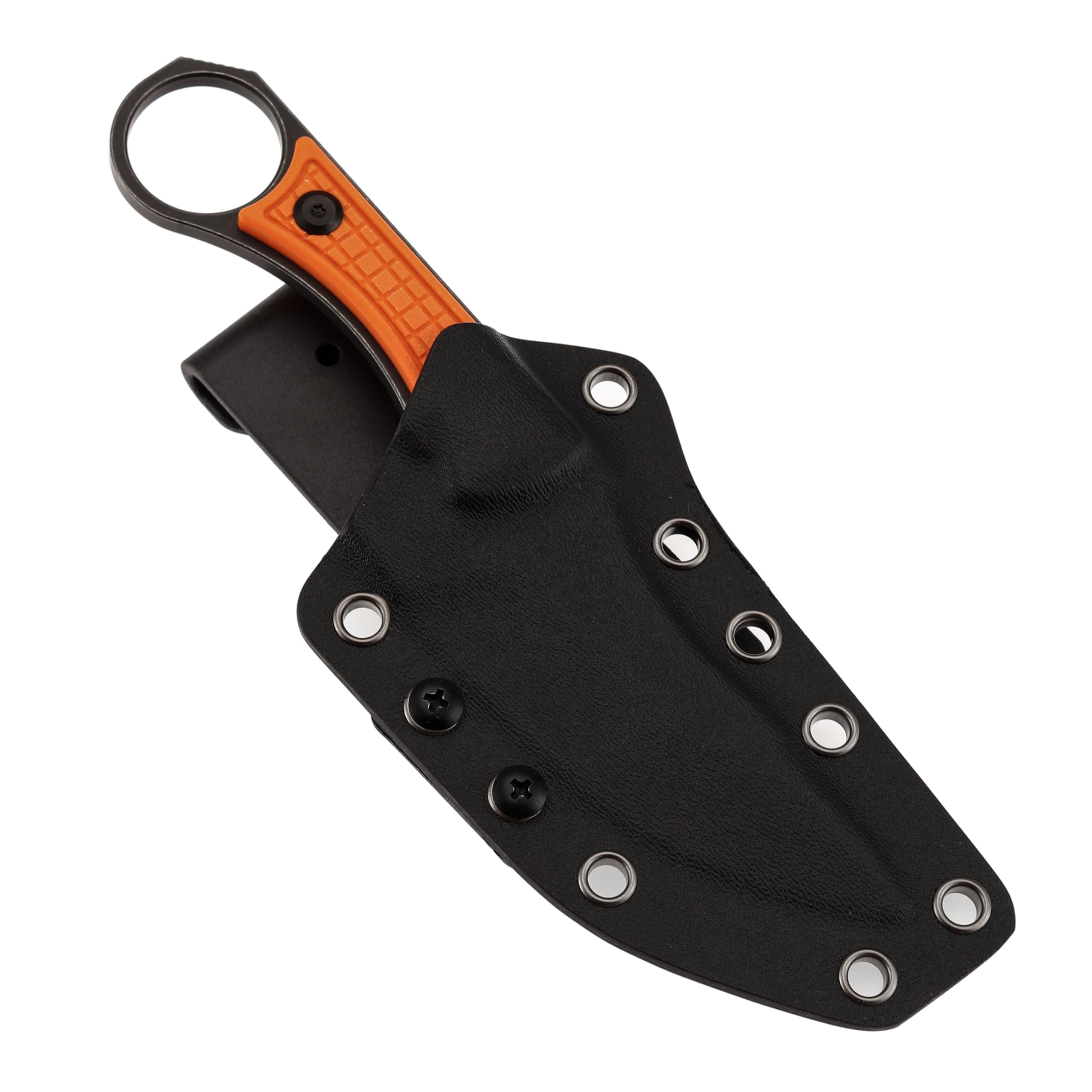 Orange G10 + Frag Pattern Ergonomic Handle: The Kansept Niko edc fixed blade knife features a Orange G10 + Frag Pattern handle that delivers premium moisture and non-slip performance, a frag pattern that is both functional and aesthetically pleasing, and a large curved chamfered design that is irresistible with no hand-held blind spots and a handle that ensures a secure and comfortable feel
