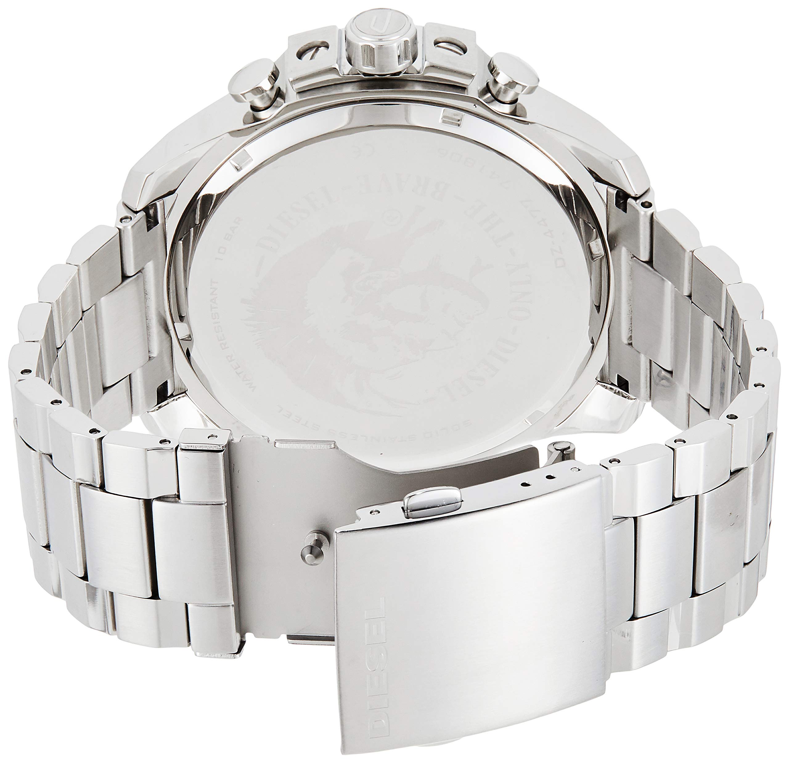 Description The Diesel Men's Mega Chief is a water-resistant item, rated 3.5, designed for underwater activities. It's available in Black, priced at $172.99, and can withstand water resistance up to 10 ATM, equivalent to 330 feet.