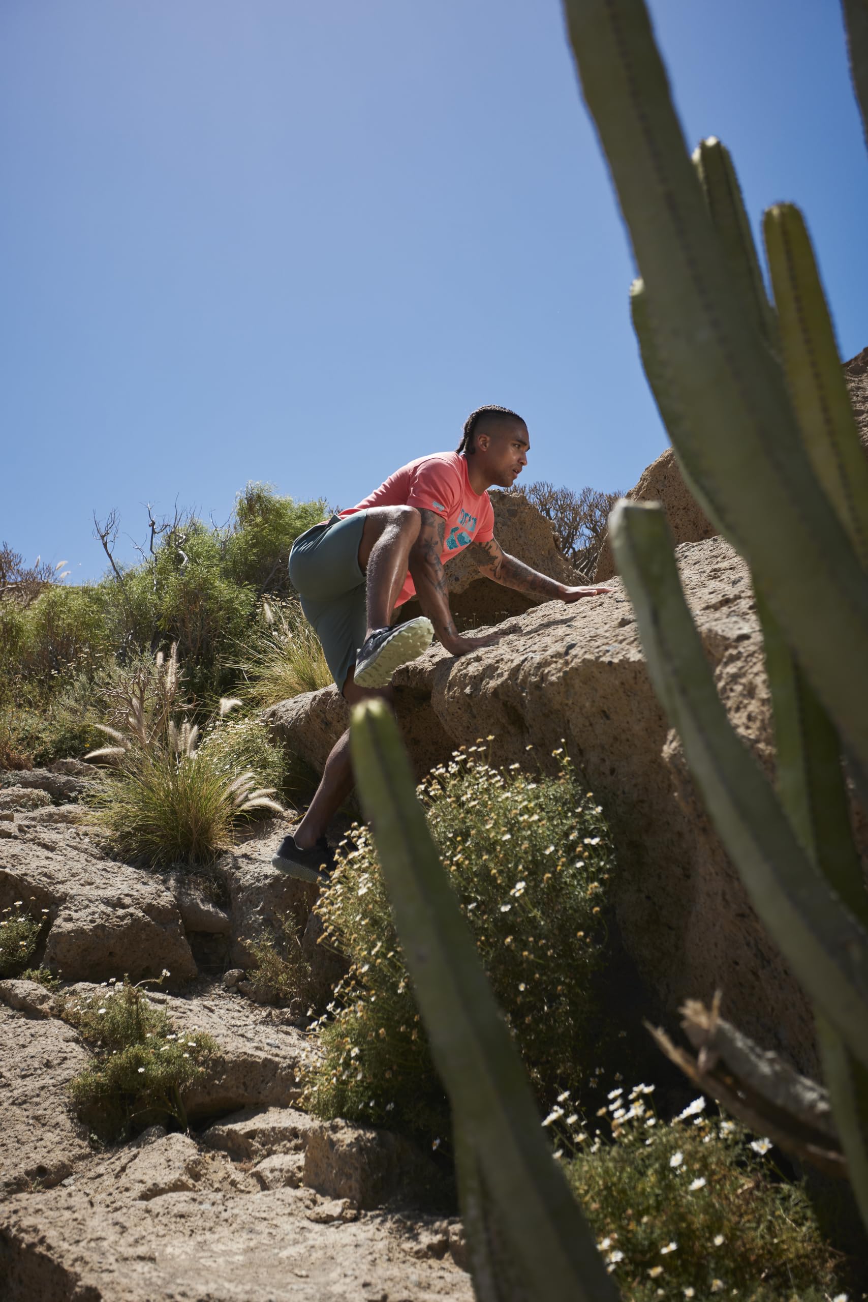 Athletic shorts with two inseam pockets, an inner pocket, side vents, paneled construction and drawstring waist