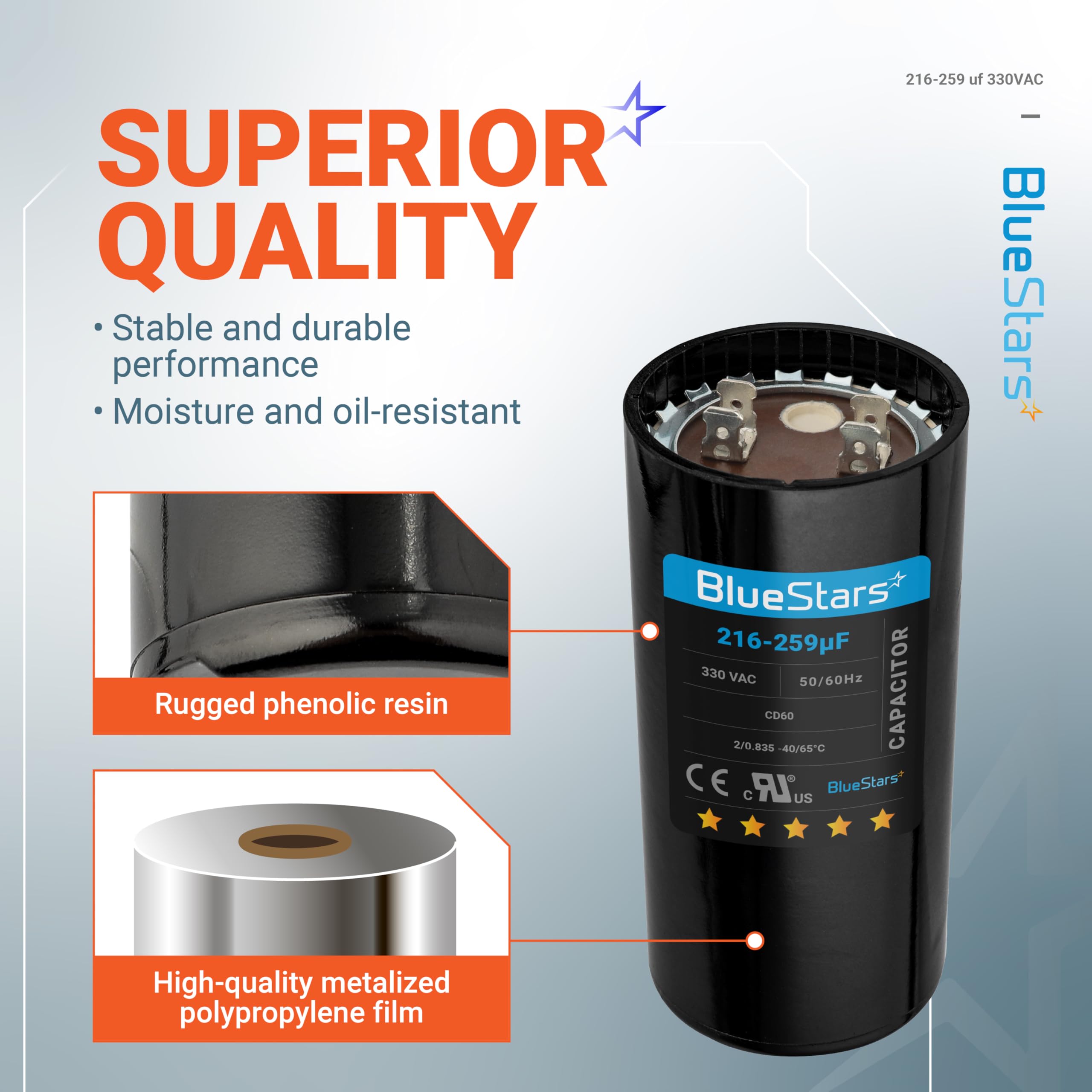 PREMIUM QUALITY - The replacement part is made from durable high-quality aluminum and well-tested by the manufacturer - Meets OEM standards - Ensures long-lasting and effective performance. This capacitor will provide your electric motors with an outstanding electrical characteristic of high capacitance stability over time and temperature, and very low internal power loss