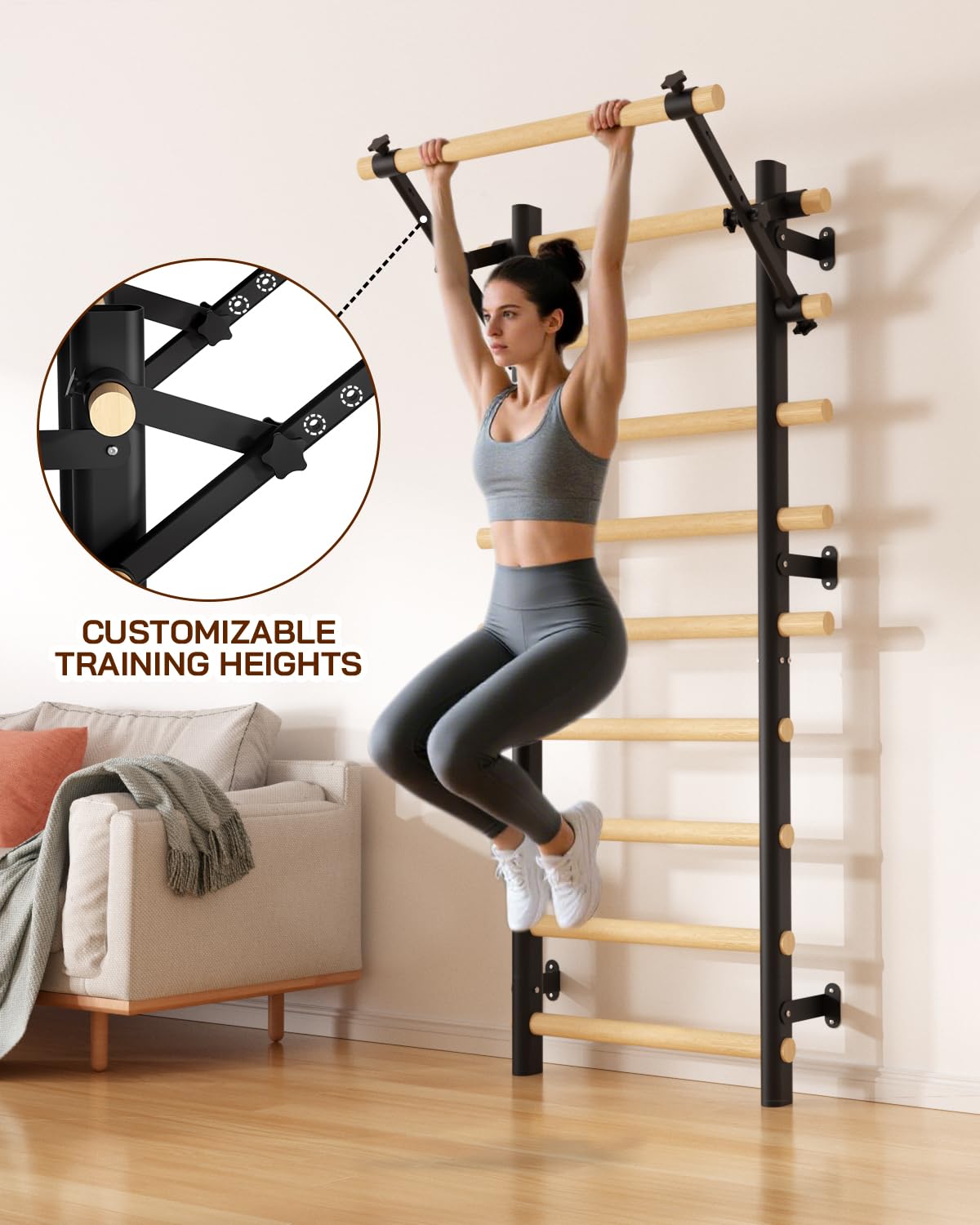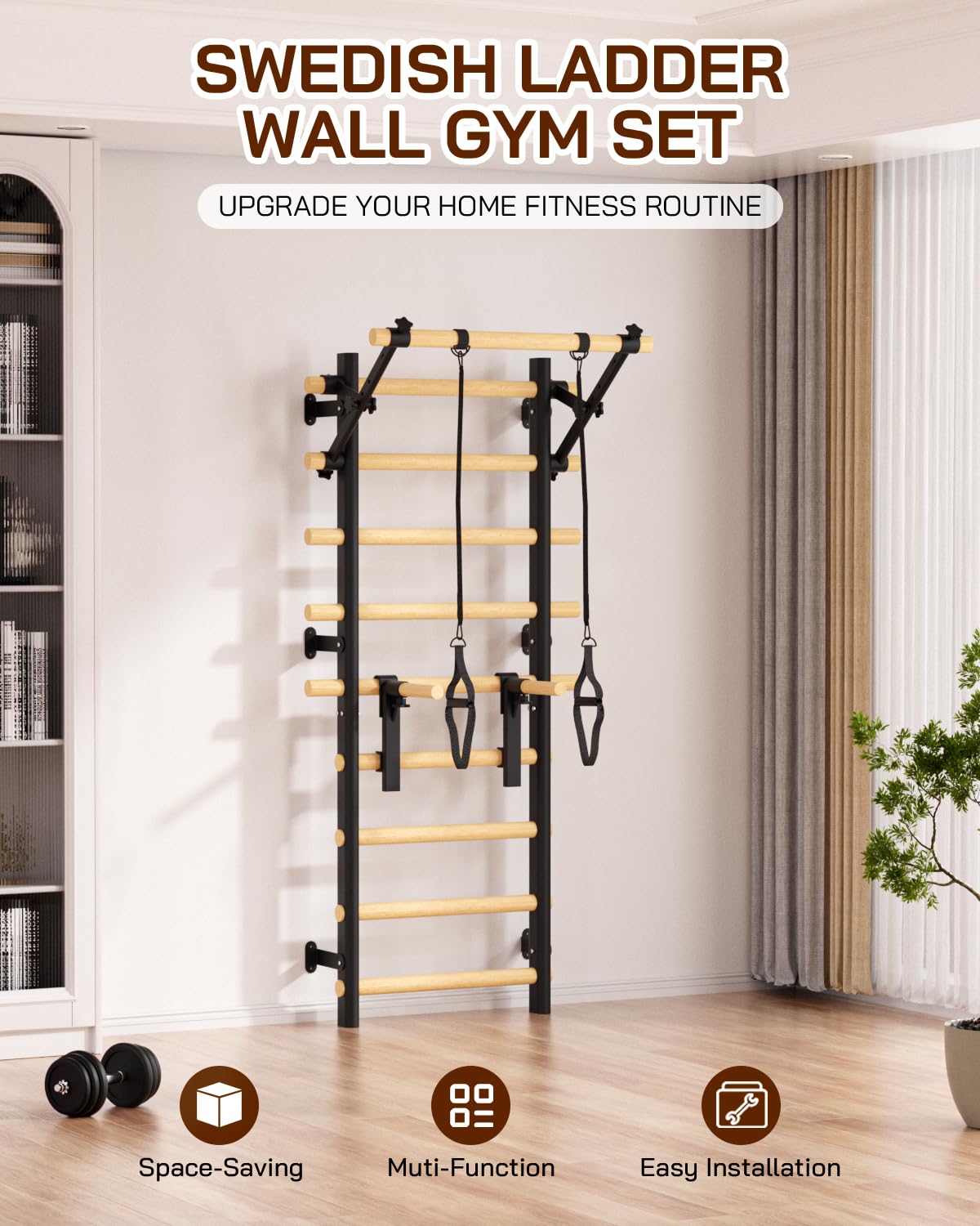 Wall-Mounted & Space-Saving: This Swedish ladder is securely mounted to the wall, providing a rock-solid training platform that won’t shift, wobble, or tip during use. Its vertical structure is ideal for home gyms or compact spaces where floor area is limited. Whether you’re performing pull-ups, resistance band exercises, or body-weight training, the fixed installation ensures maximum stability for controlled, high-intensity movement. Unlike bulky multi-station racks, it delivers full functionality while maintaining a clean, minimal footprint in your training environment