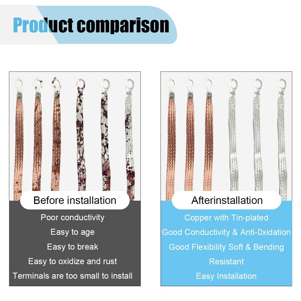 【Premium Material】: The car grounding strap is made of high-quality copper material, corrosion resistance, oxidation resistance, good heat dissipation, low risk of fracture, and can maintain stable performance during long-term use.