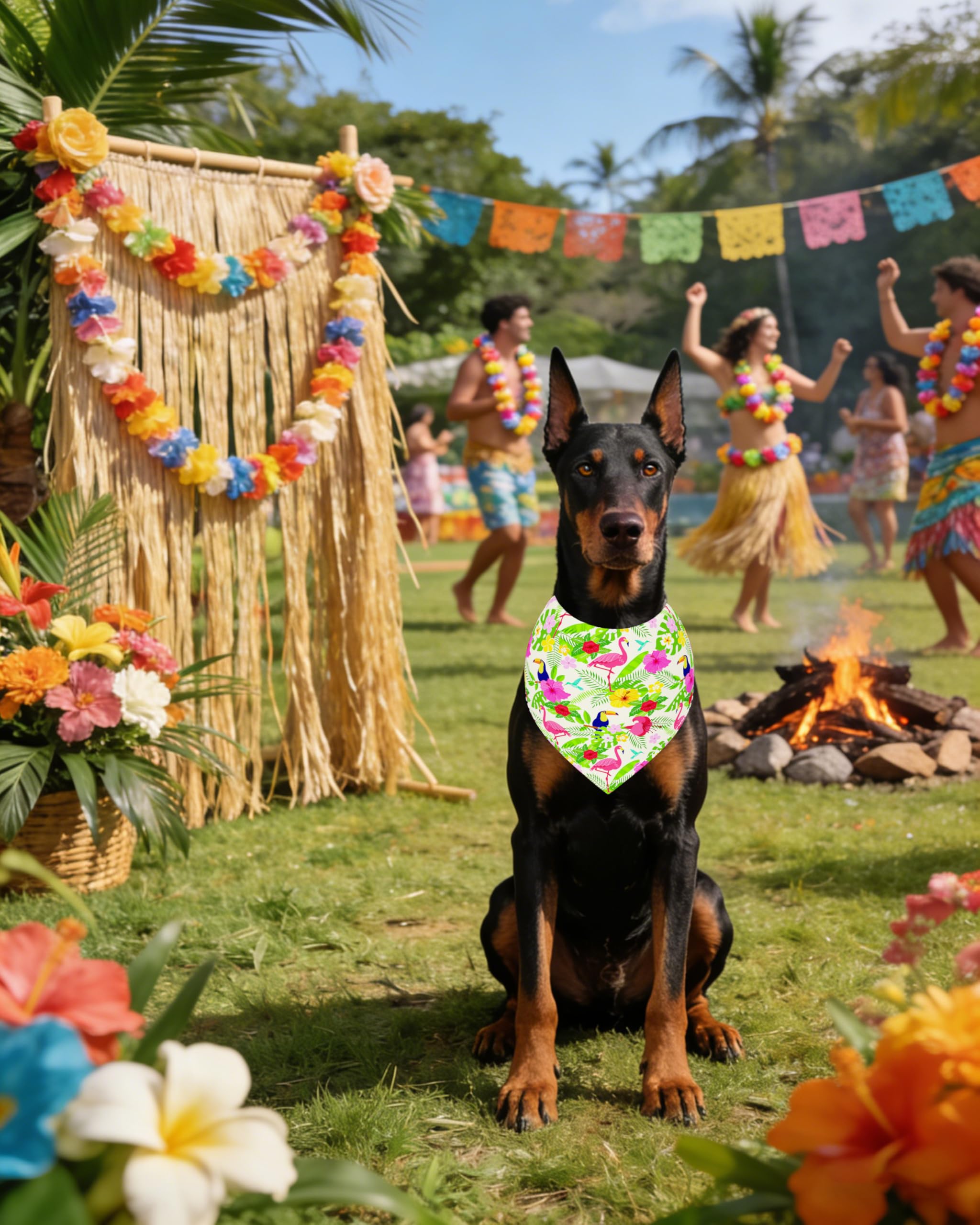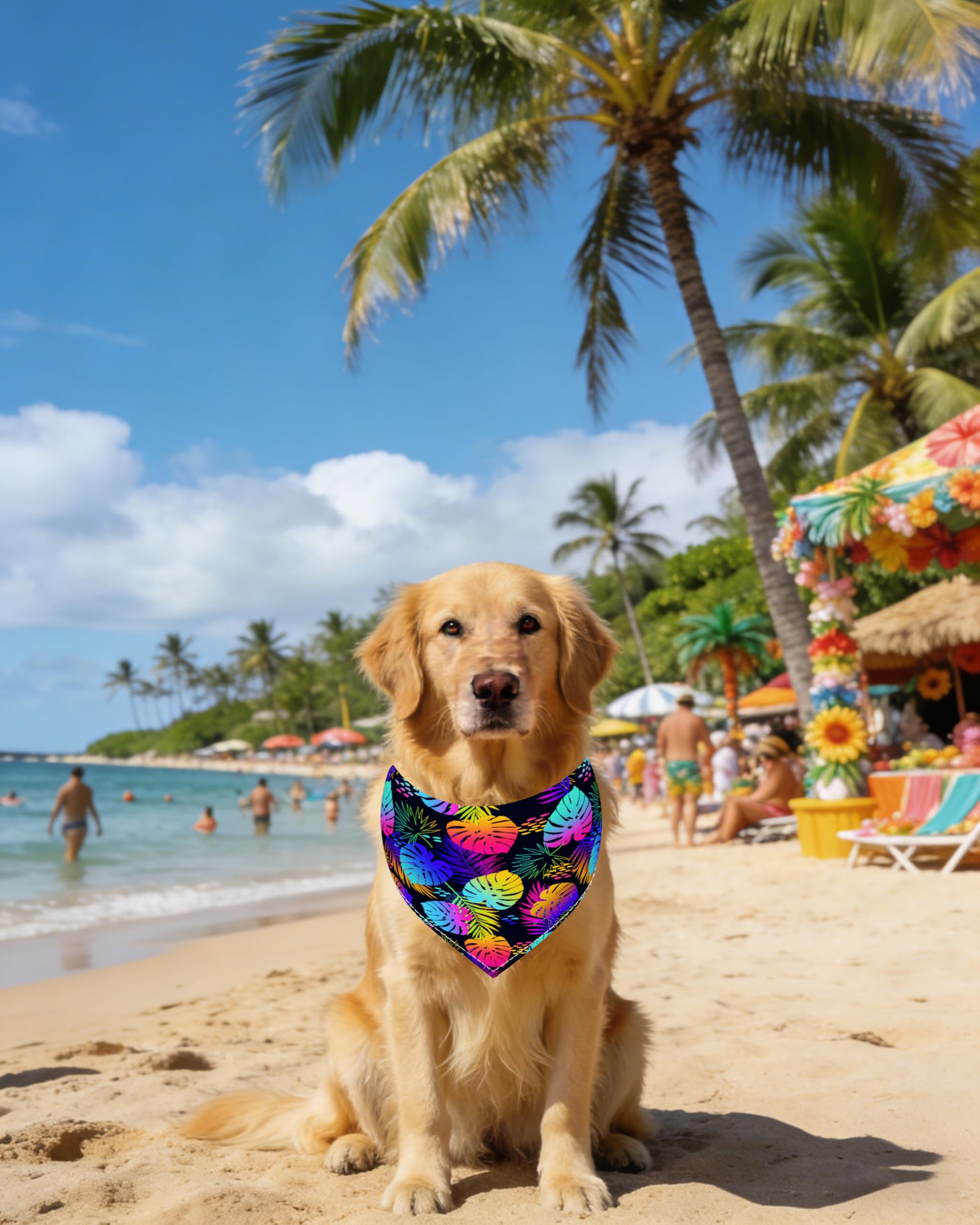 Material: Crafted from soft, high-quality polyester fabric that maintains color vibrancy after multiple washes. With fine workmanship and clear printing, the dog bandanas Hawaii remains comfortable even during extended wear—letting your pet enjoy summer without any irritation