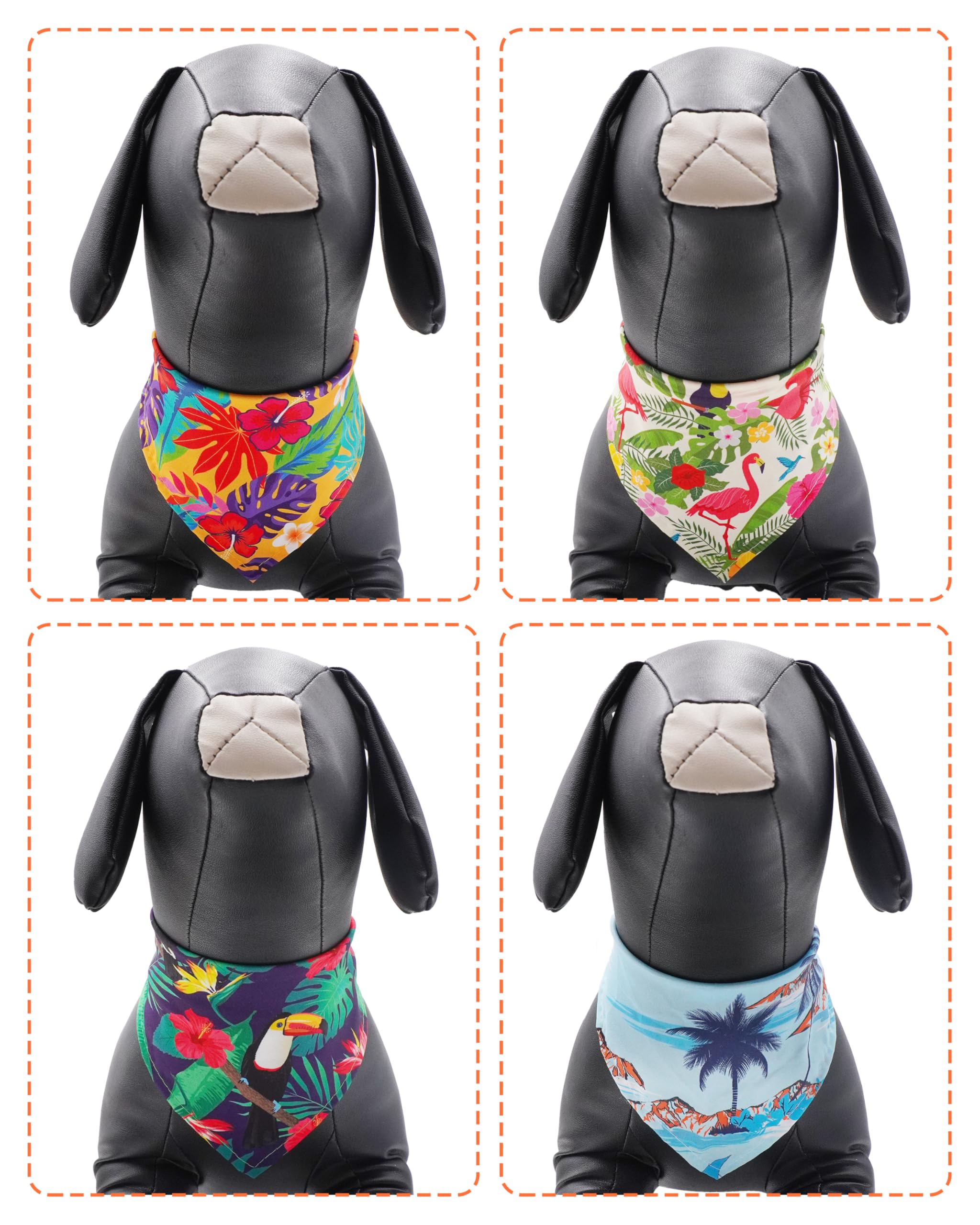 Multi-scenario Applications: These Hawaii dog bibs that add charms to your beloved pet in the holiday atmosphere, making them perfect for indoor and outdoor scenarios including celebrations, parties, family outings, photo sessions, holiday or as ideal gifts. They can also be worn as scarves, headwear, accessories for specially designed for all most breeds, these dog bandanas will help your furry friend shine at summer