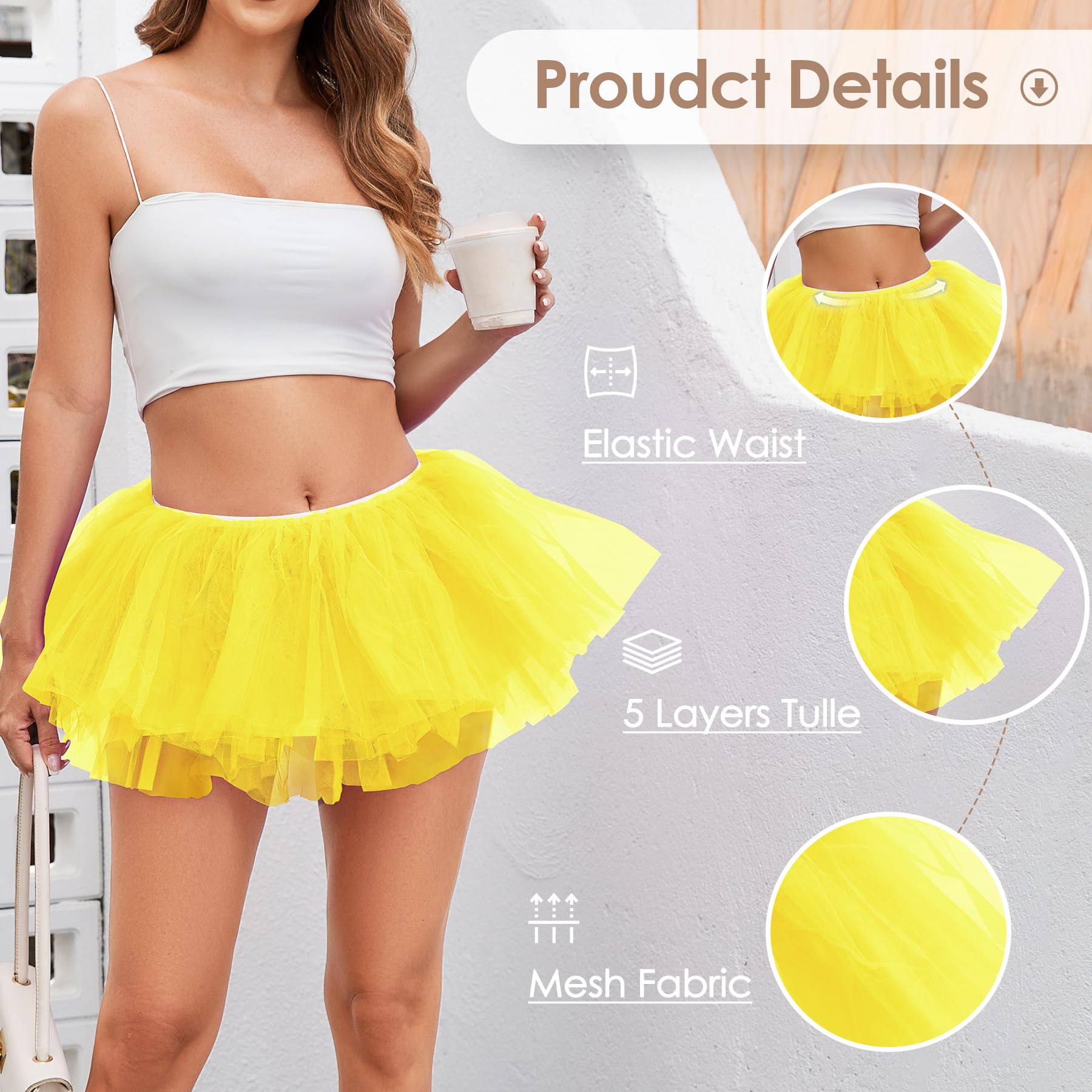 【Features】Designed with 5 layers of tulle, this tutu skirt provides an elegant, full shape, making it ideal for creating a standout look. The multiple layers give the skirt extra volume without being too heavy.
