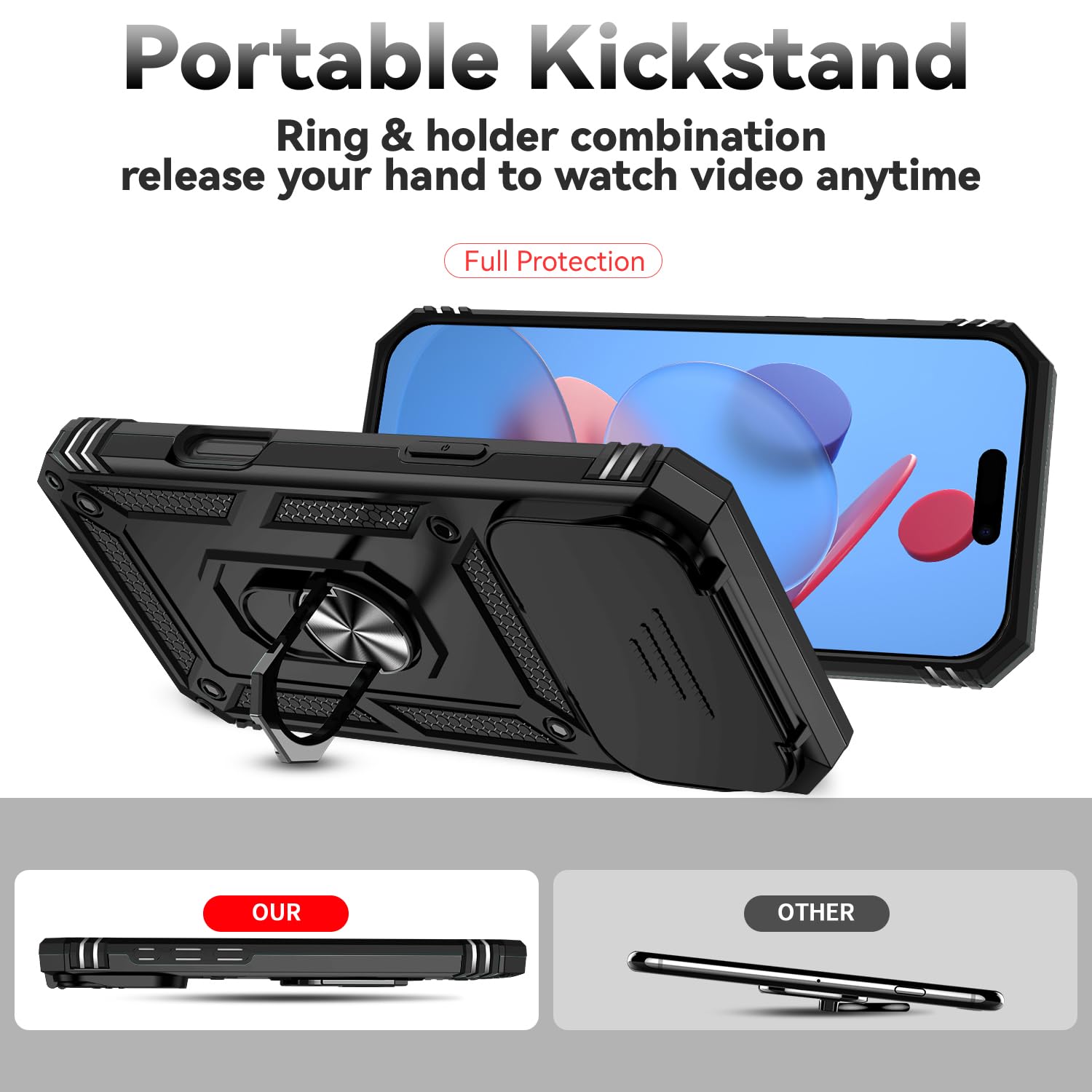 【360° Rotable Kickstand Design】 Metal kickstand can rotate 360°, easy to rotate and sturdy on the case. This Compatible with iPhone 17 Pro Max case Built in kickstand gives you the convenience to watch videos and movies hands-free with desired comfort and stability. Besides, built-in metal sheet for stable adsorption, which can be directly adsorbed to the magnetic car mount holder. (Not includes the magnetic car mount holder).