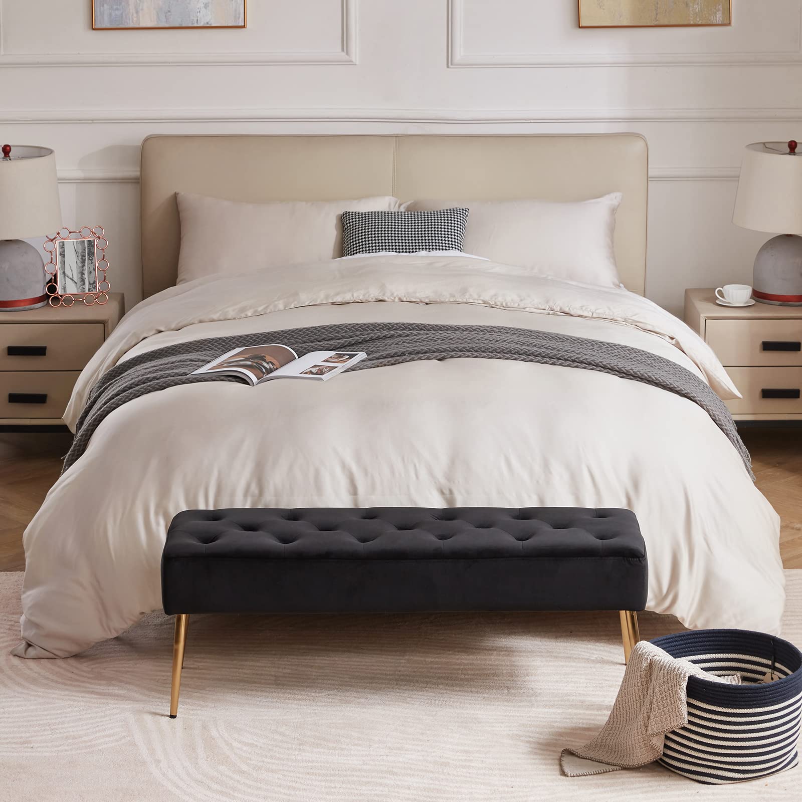 Stable and Durable: Gold metal legs are sturdy and durable to with stand full weight capacity. Simply screw metal legs into each corner of the bench with the provided screws and your bench is ready to enjoy