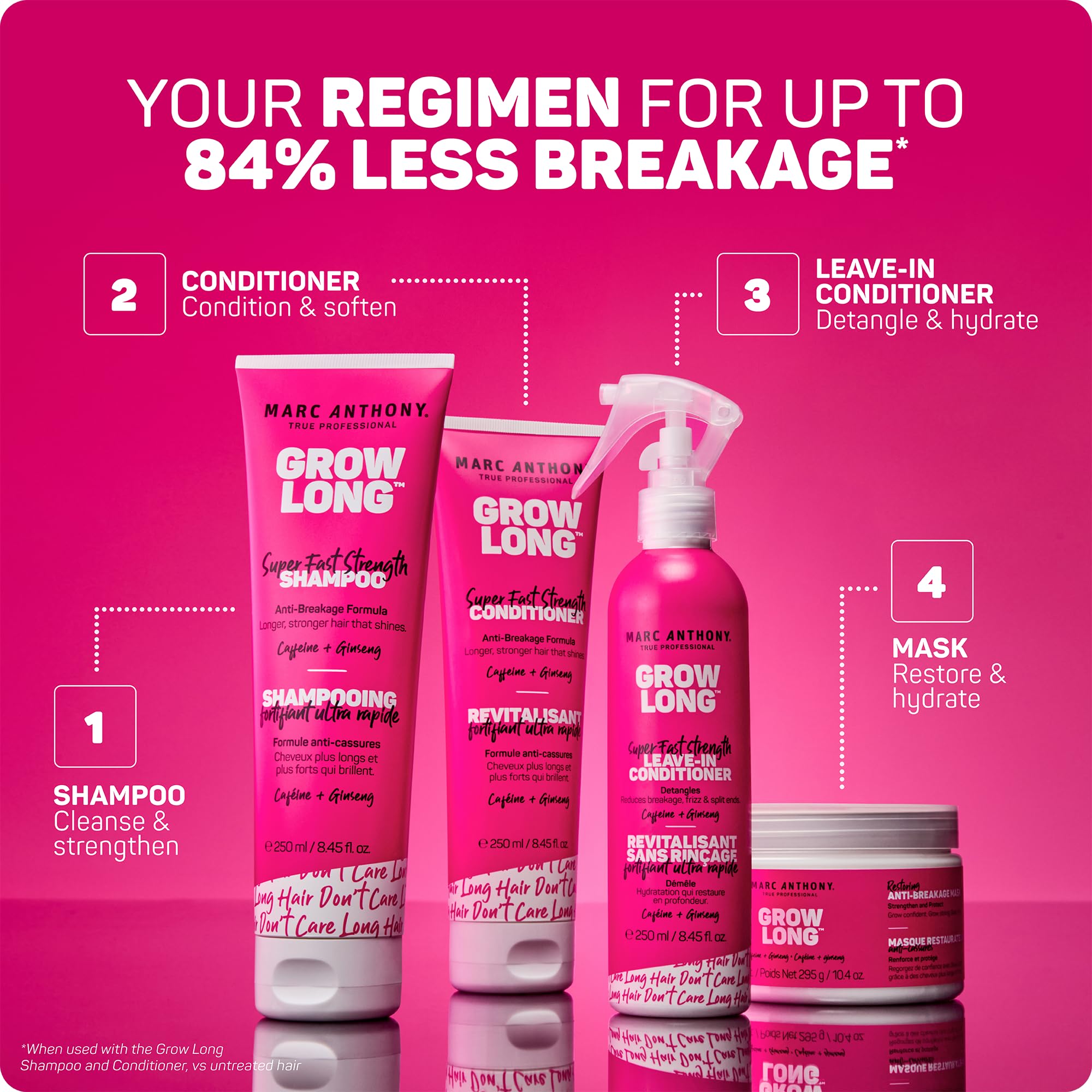 Long Hair Starts Strong: Marc Anthony’s Grow Long Super Fast Strength Leave-In Conditioner is a multitasking spray that helps condition, detangle, and strengthen strands, supporting healthier-looking hair as it grows. 8.45 fl oz