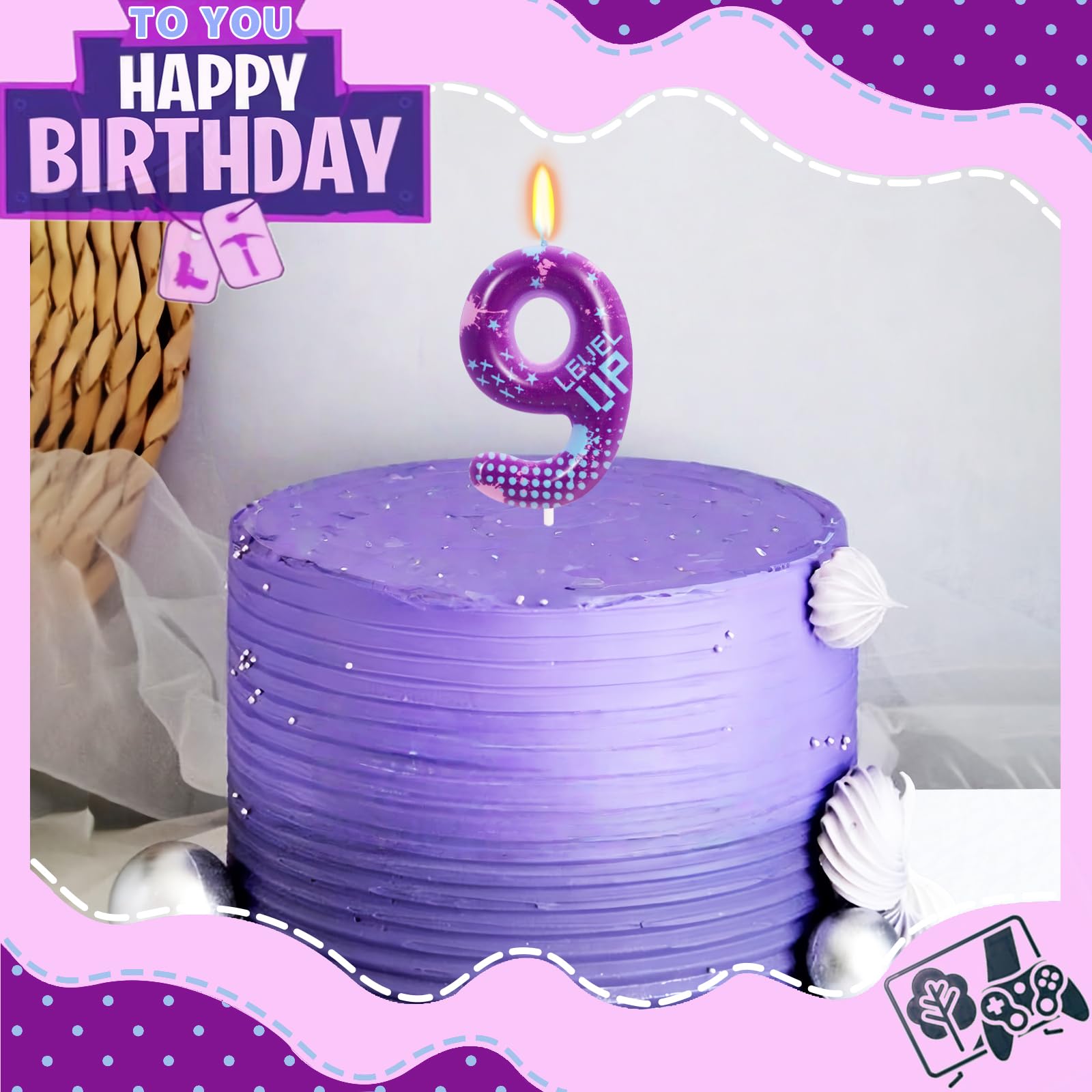 BEAUTIFUL DESIGN: A video game themed birthday candle with a cute print and rich game elements. It fits perfectly with game themed cakes