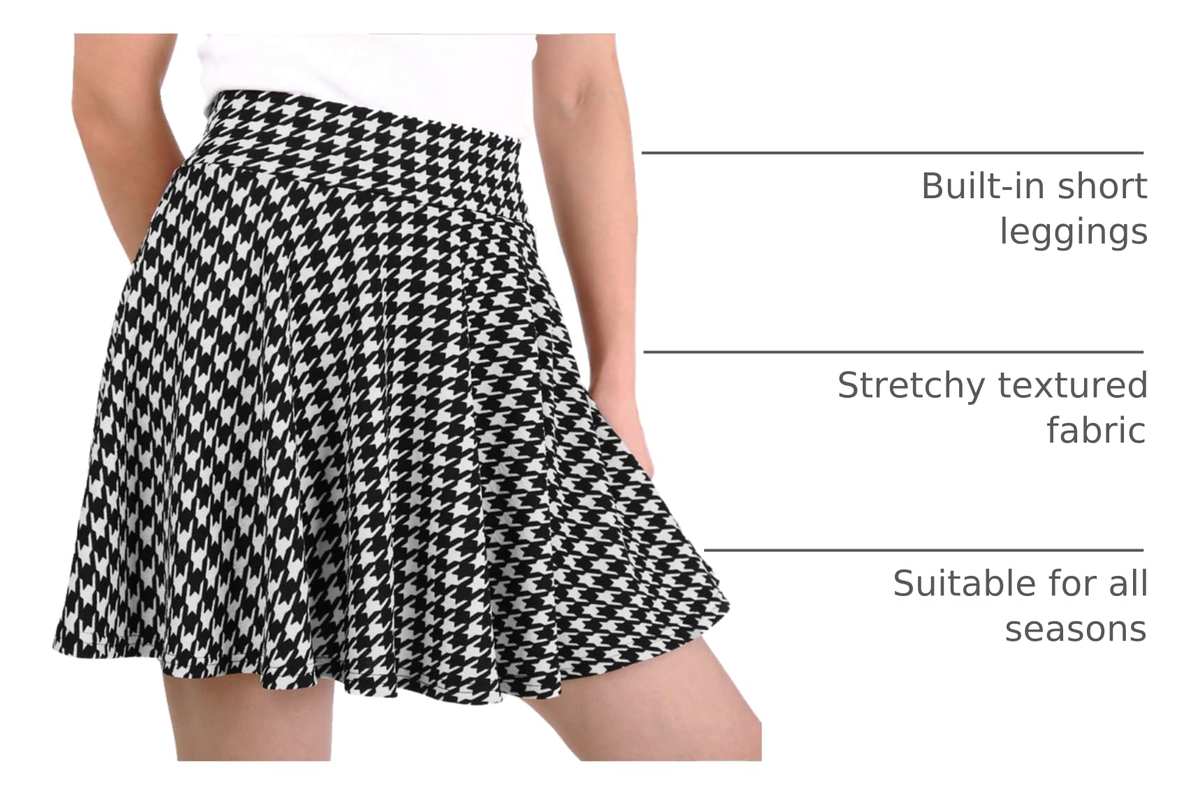 Flare A line skater skirt with high waist and concealed built-in short leggings,not see through