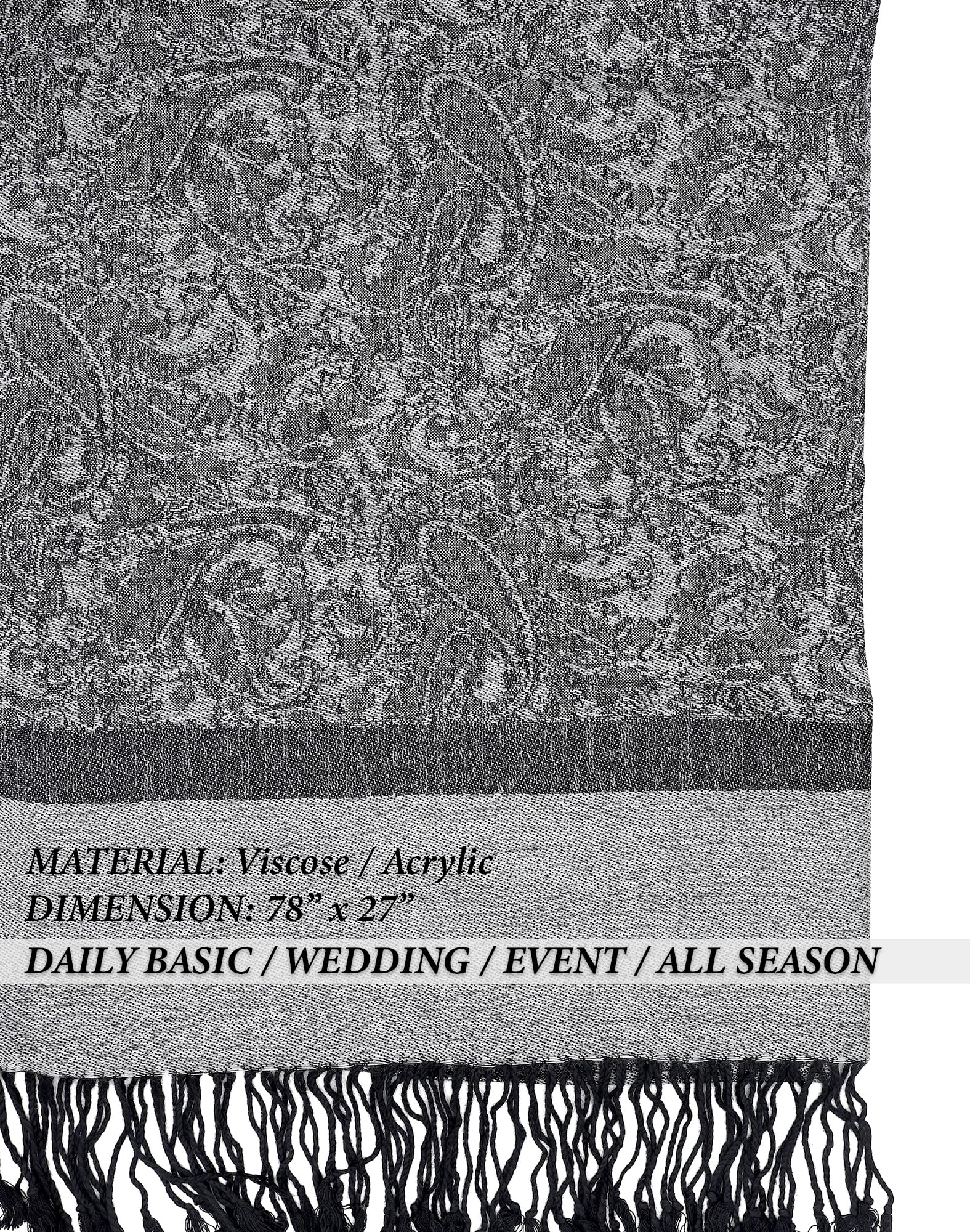 ✔️ Soft & Lightweight Feel – Crafted from a fine blend of viscose, and acrylic, this lightweight scarf for women offers a breathable texture that feels incredibly soft on the skin. Generously sized at approx. 28" W x 78" L (with 3" fringe on each end) and weighing just 6 oz, it drapes effortlessly with elegant flow.