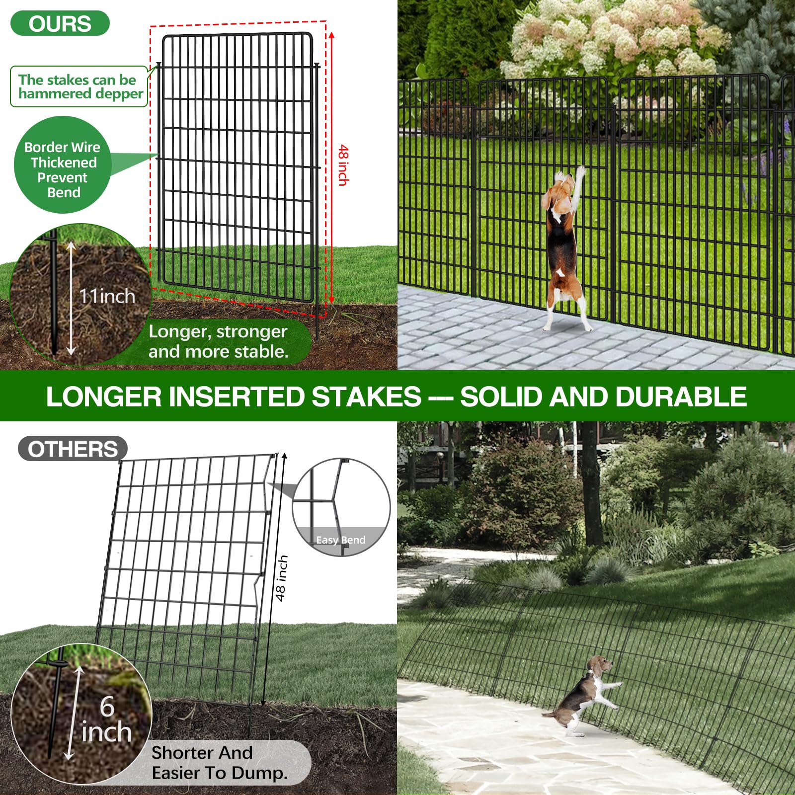 Stable and Long-lasting --- Thickened metal stakes with an 11 in in-ground stake section, securely anchor the fence to the ground, able to withstand bending and provide reliable performance for years to come. Made from high-quality, rustproof metal that won't warp over time, fencing is sturdy and easy to maintain, and can withstand harsh weather conditions, ensuring your garden is protected all year round.