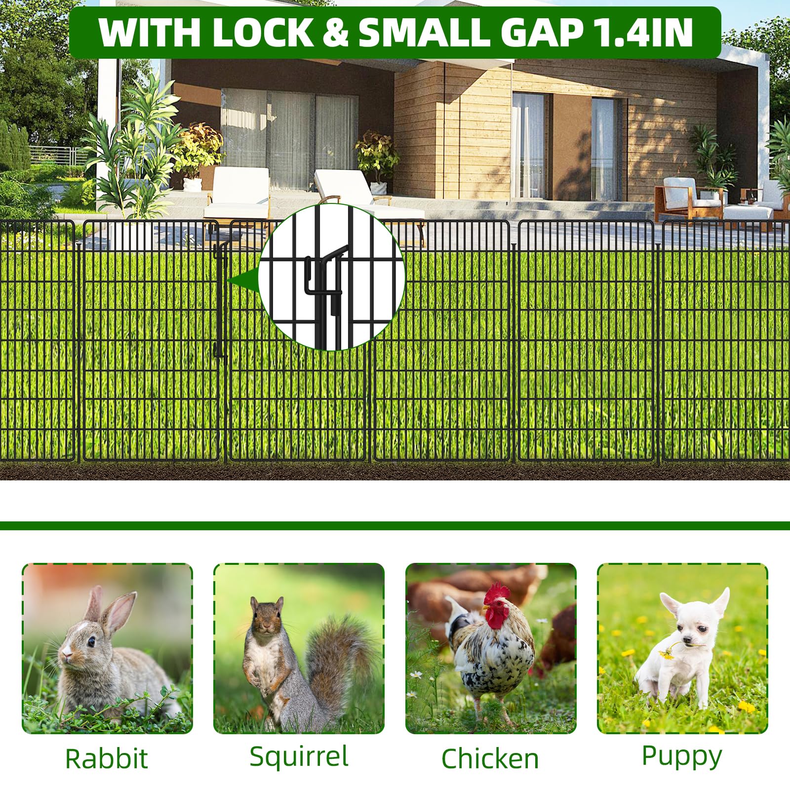 Dog Fence for Yard --- Each panel of the dog fence measures 48" H x 29" W, can be connected and expanded into different shapes based on your specific needs. Comes with a lock and the flexibility to choose whether or not you want to install a gate. Upgraded to 48-inch heightening design to prevent large dogs from entering the garden.