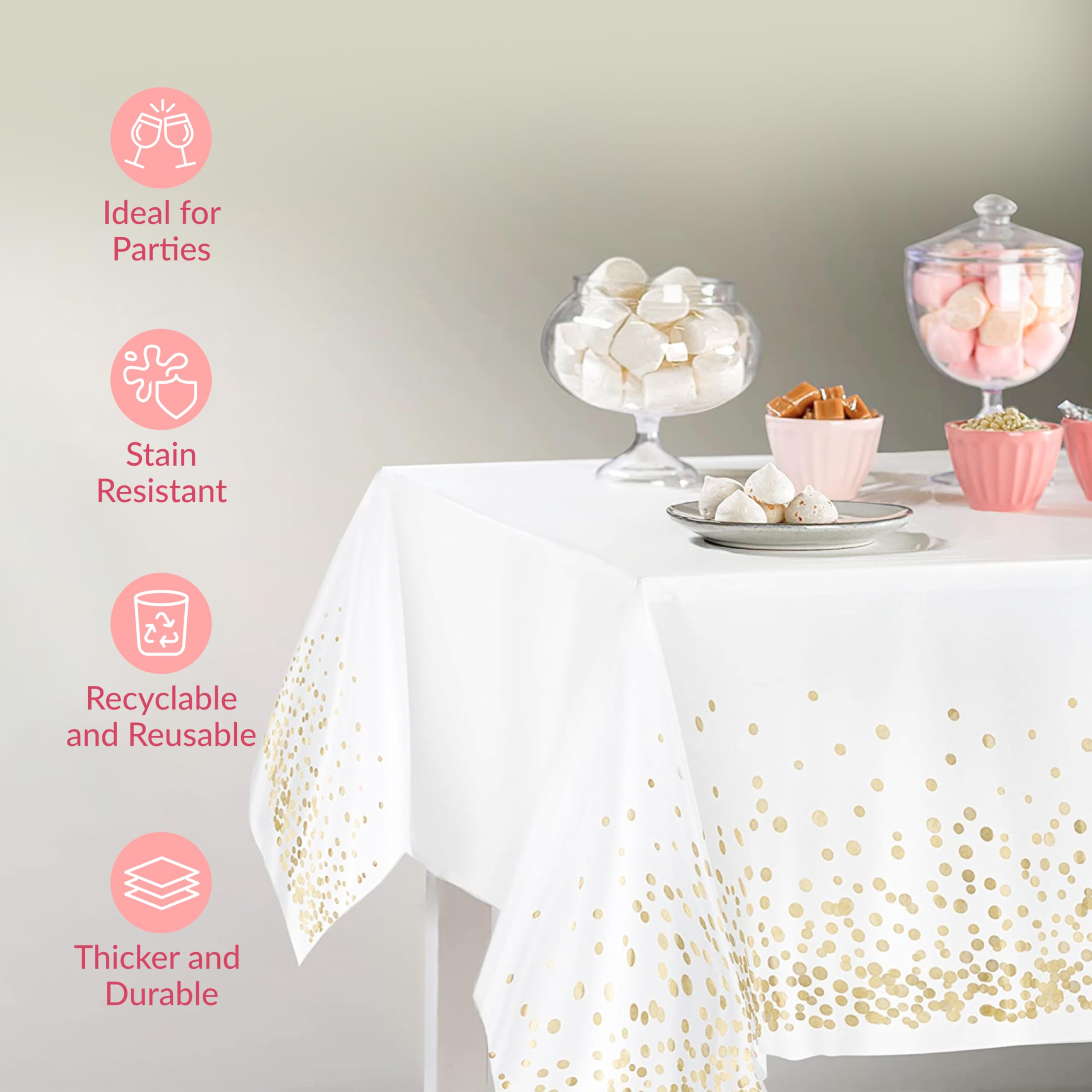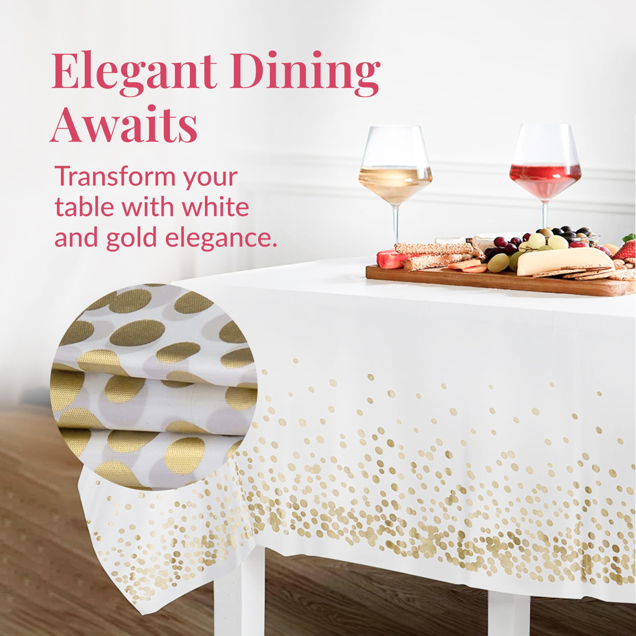 Versatile Party Use: This birthday tablecloth offers a chic design with white and gold accents. Ideal for first communions, anniversaries, graduations, and engagement party decorations