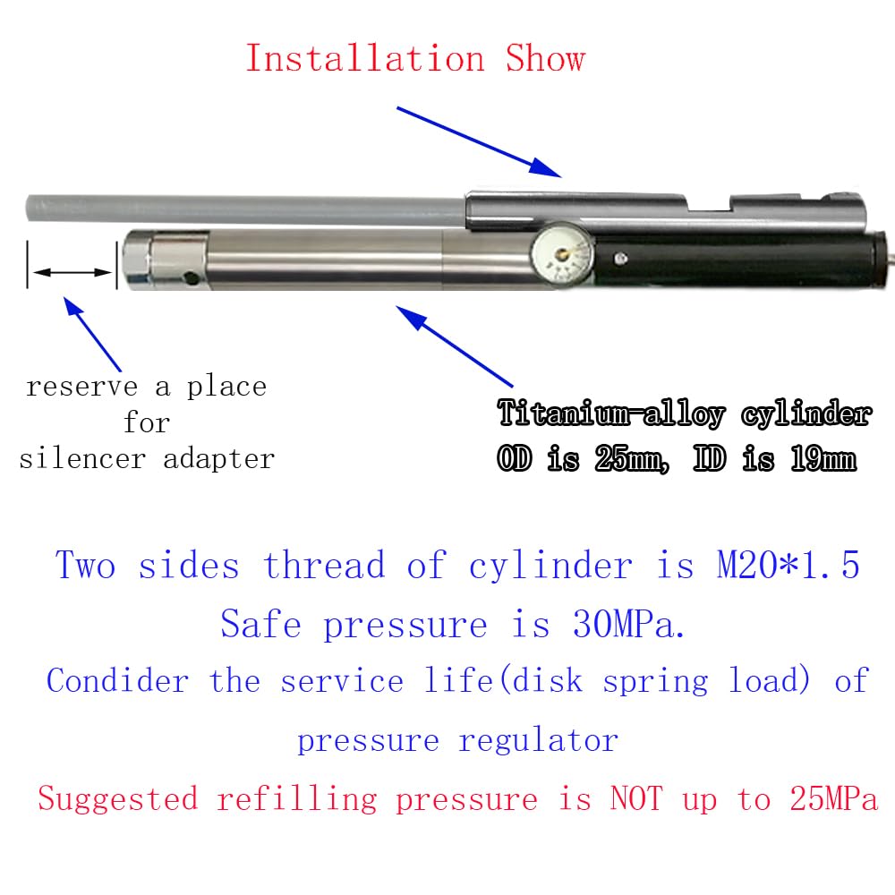 We also have band, breech, shoulder stock, you can find them from our store. Regulated pressure is 4 ~ 15 mPa. Working pressure for cylinder is up to 30 mPa(30 mPa gauge show). So DO NOT refill it up to 30 mPa.