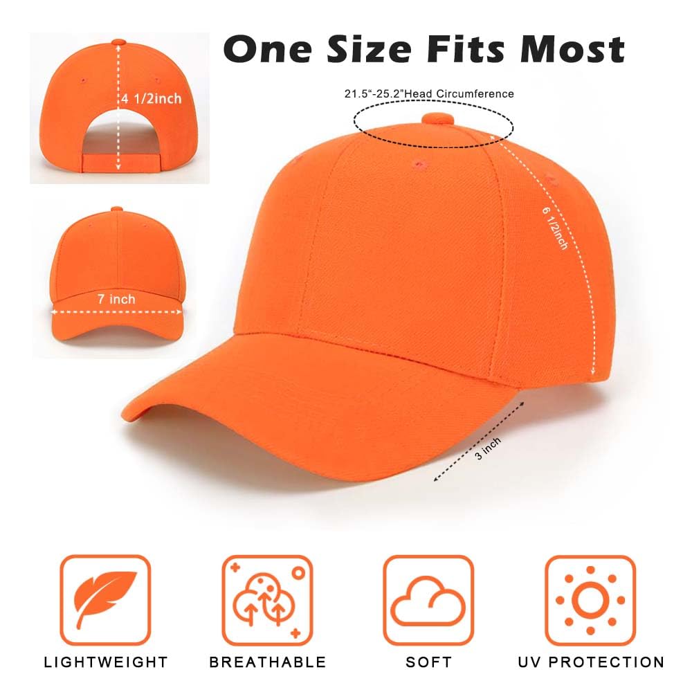 [Convenient Design] Designed with an adjustable strap,these lightweight and breathable baseball caps ensure a one-size-fits-all solution,offering ultimate comfort and adaptability.Perfect for any group or individual,these plain baseball caps combine style with practicality,making them ideal for outdoor events,sports teams,and casual wear.