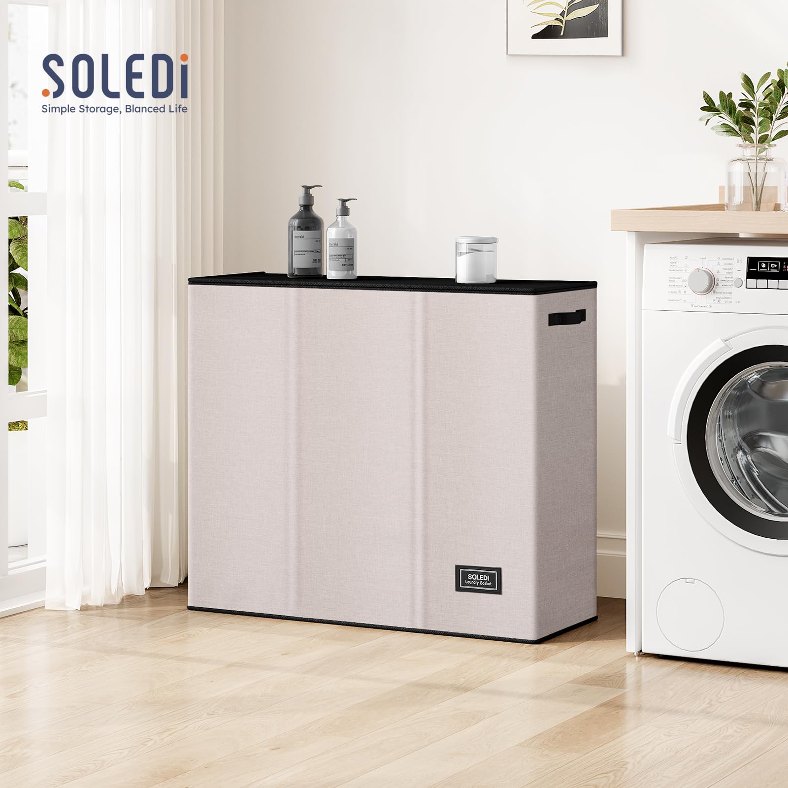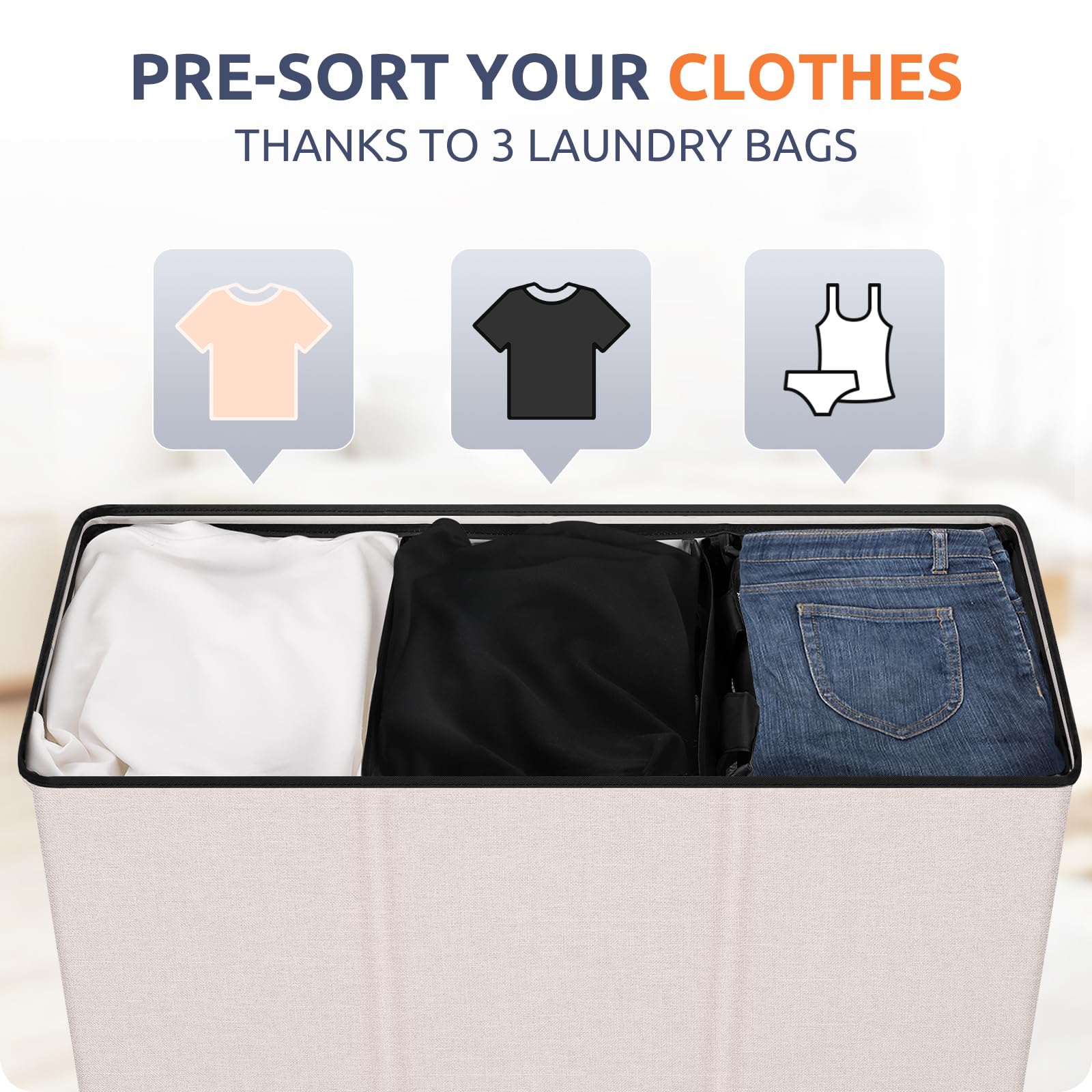 180L Extra Large Laundry Hamper 3 Section: Say goodbye to frequent laundry trips with our 180L laundry hamper! Measuring 32.6"L×12.2"W×27.6"H, this extra-large hamper offers three sections for easy sorting. Perfect for families or couples, it holds a week's worth of clothes. Dedicated compartments for whites, darks, and delicates make laundry day more organized and hassle-free. This three-section laundry organizer ensures efficient and neat storage.