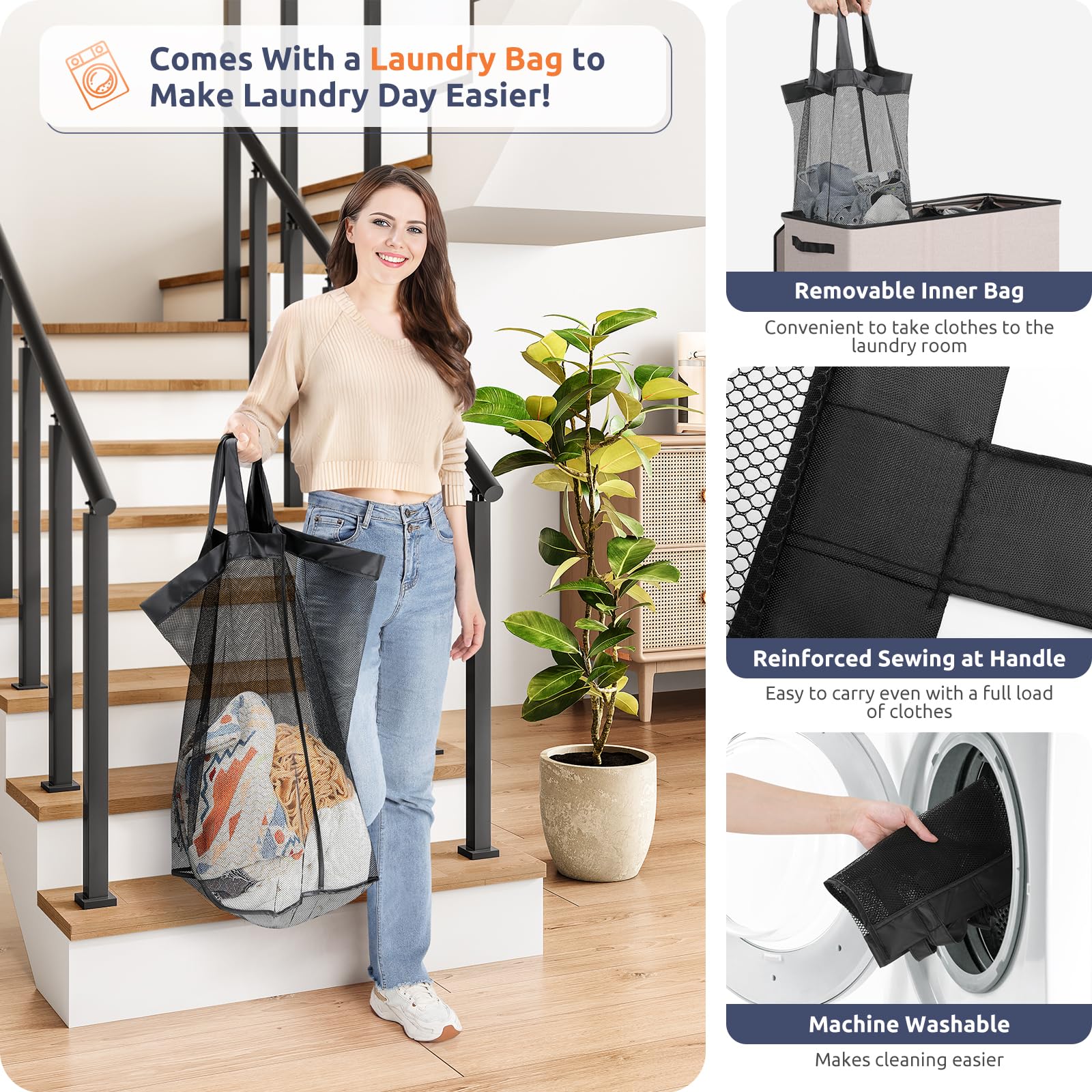 Sturdy Structure and Not Deformed: Discover the durability of our 180L laundry hamper! With 8 robust insert rods and a fortified MDF panel at the bottom, this laundry hamper is designed to withstand heavy loads. An embedded metal frame at the top ensures stability, preventing collapse or deformation. Say goodbye to flimsy hampers; our solid laundry basket is built to last, making it an essential addition to any household seeking a reliable clothes hamper.