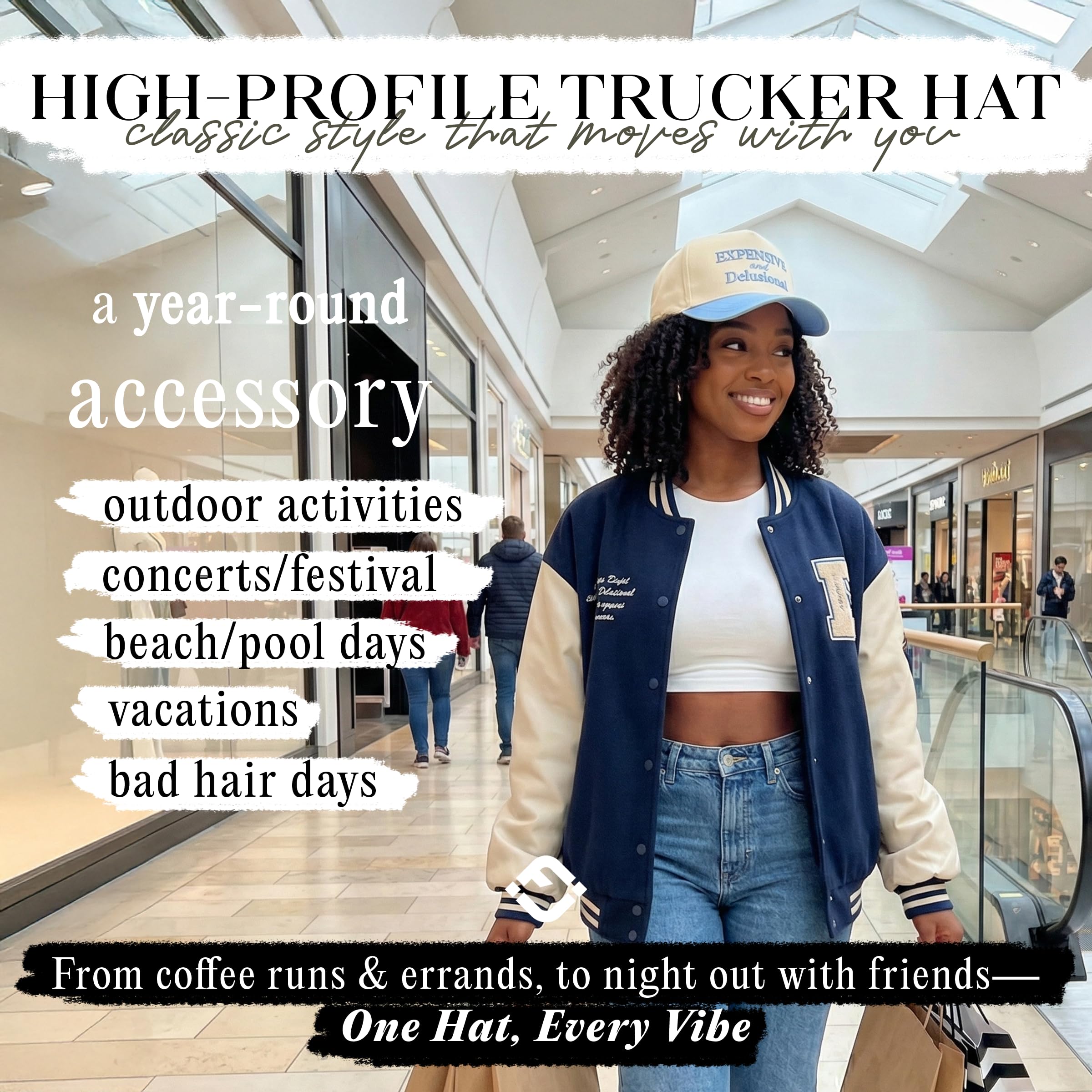 PREMIUM QUALITY: Made from a durable blend of 35% cotton and 65% polyester, this embroidered hat is lightweight, breathable, and comfortable for all-day wear. Its structured fit with a curved brim ensures it holds its shape, making it a top choice for beach trucker hats for women and mens trucker hats alike.