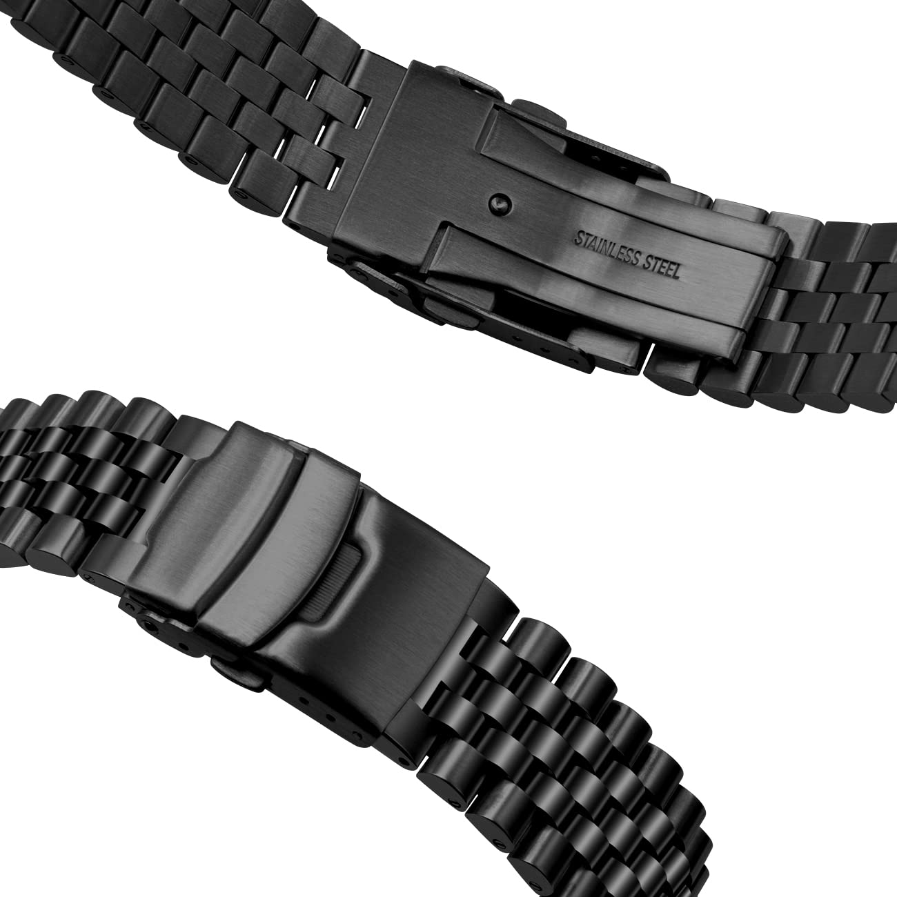 <b>Premium Material: </b>Our watch band is composed of high quality corrosion resistant 316L stainless steel with accurately cut and sophisticated craftsmanship compare with other normal band. Thick and sturdy diver buckle clasp allows you use thousands of times, looks much expensive than pieces of buckle.