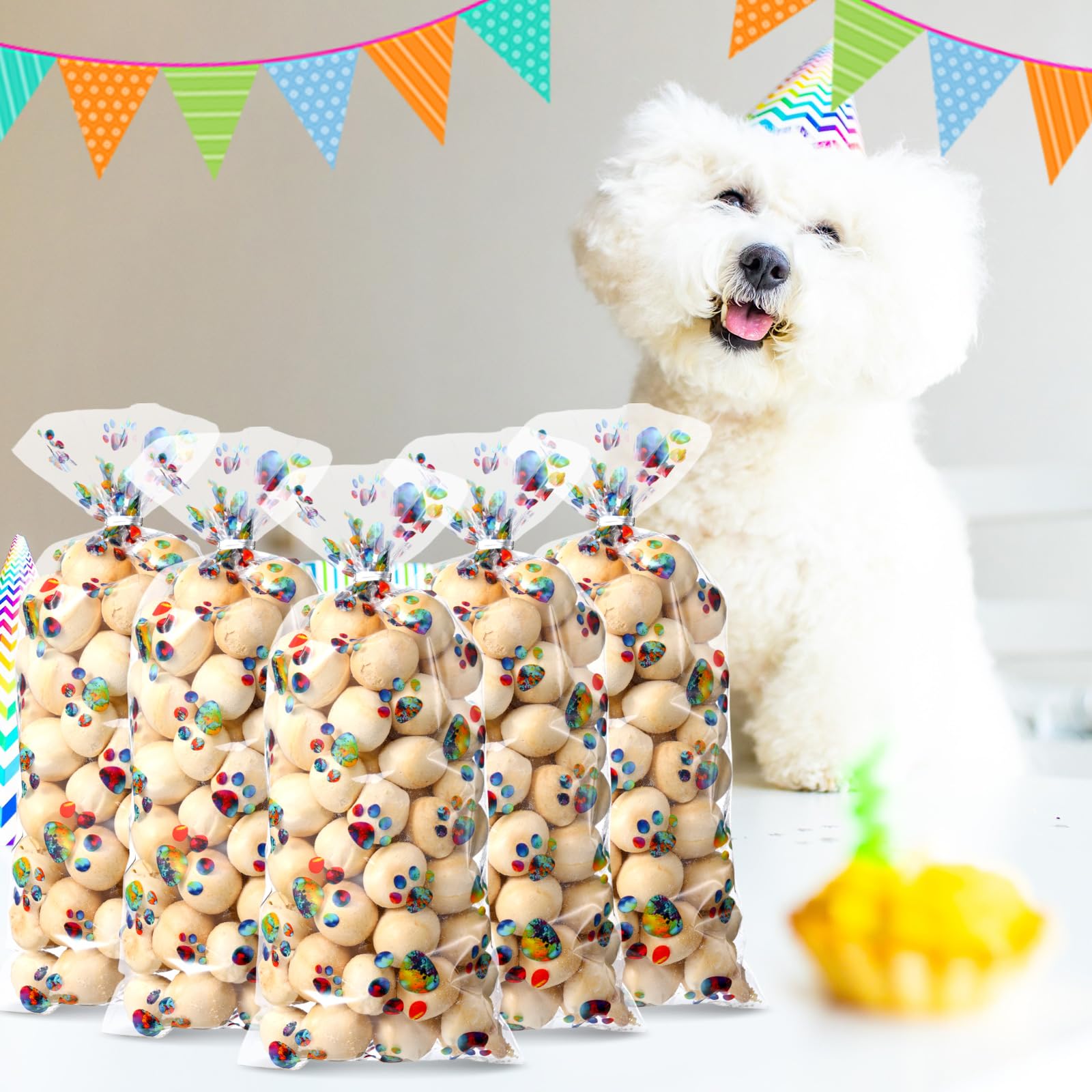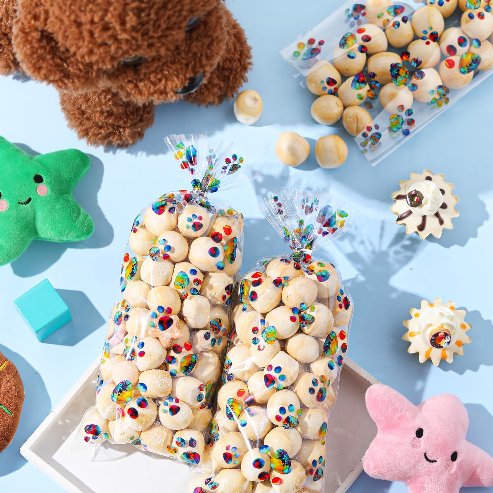 Design: these cellophane bags are designed with paw print patterns, which can add pet party atmosphere, catch both children and adults attention, cater to the interests and taste of children