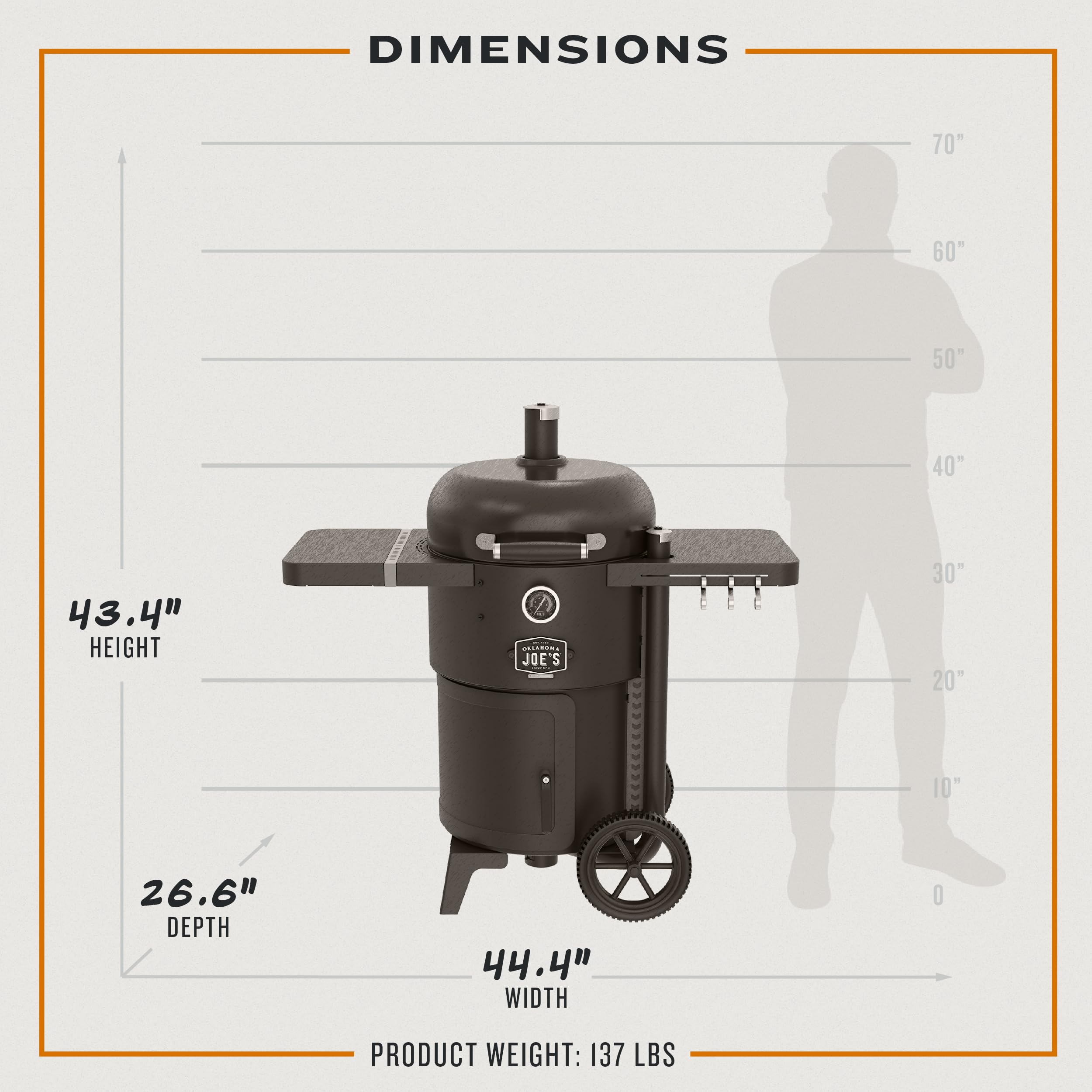 LONGER SMOKES: Load up to 8 lbs. of charcoal and wood for 14+ hour smoke sessions.