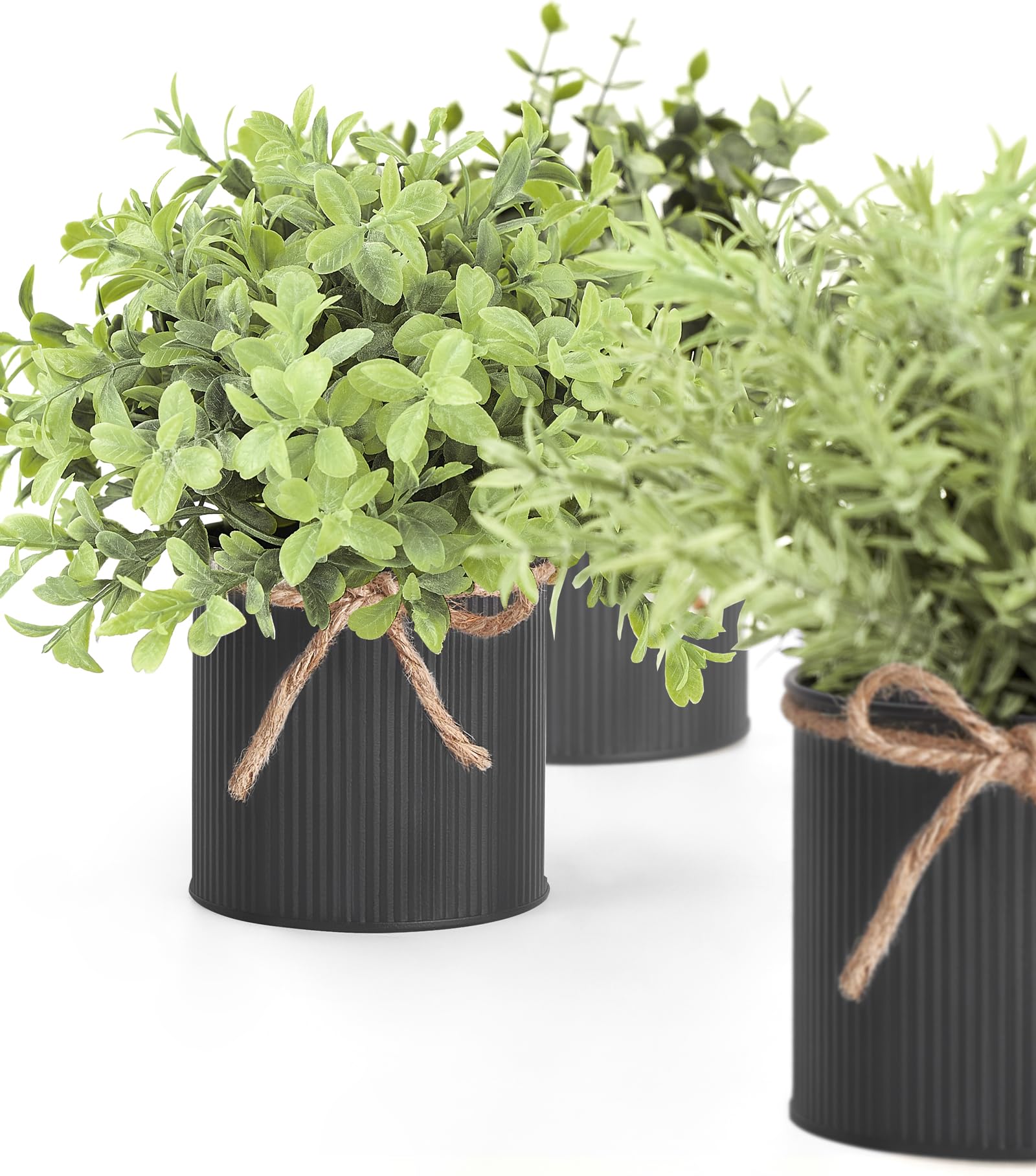Material: Made of high-quality plastic, the artificial plant looks realistic to the eye and remains just as fresh-looking year after year. The pots are made of premium galvanized metal and tied with a jute rope bowknot, adds rustic and country sense for household style