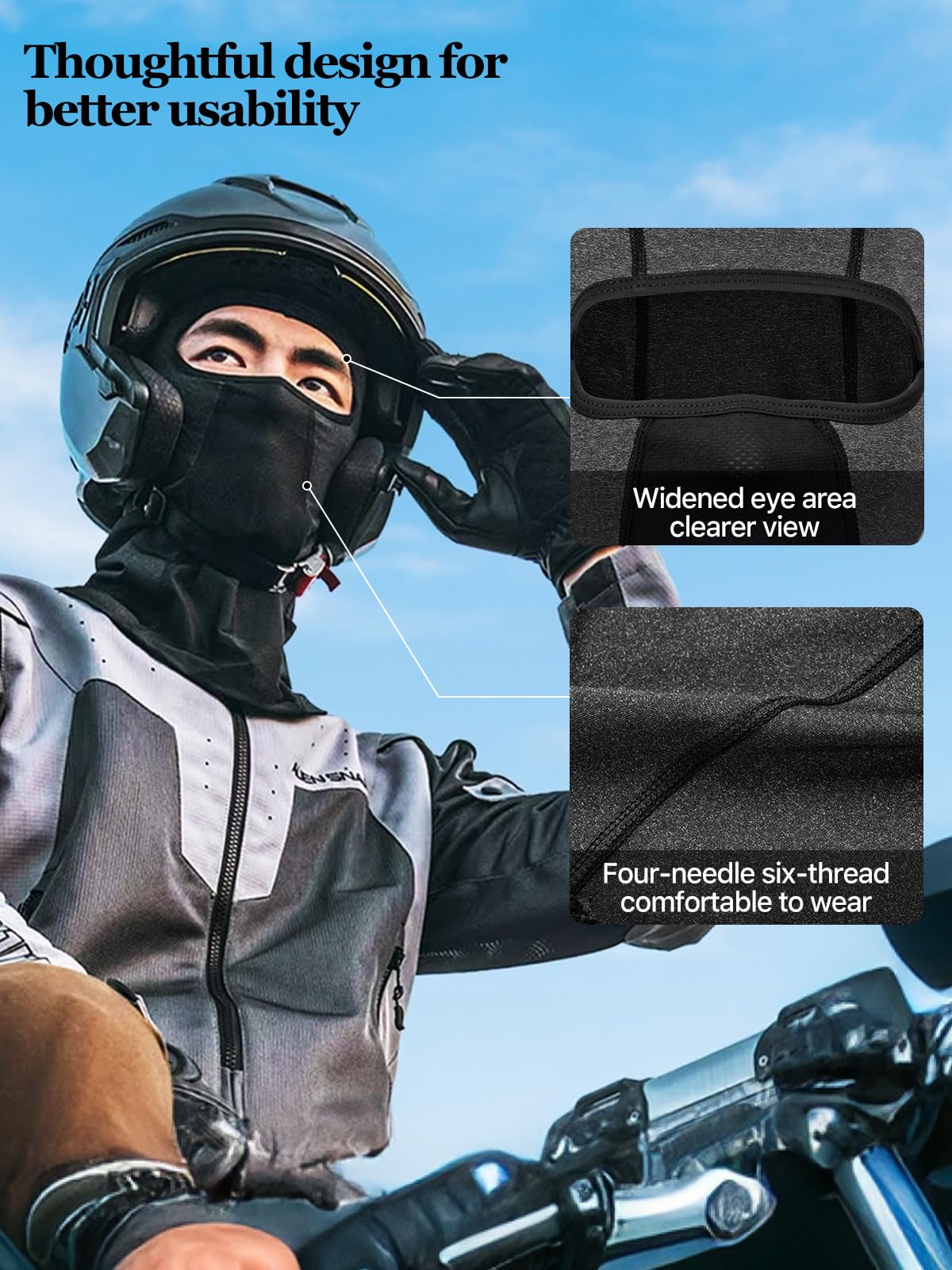 Quick-Drying & Breathable:Keep cooling all day long with the balaclava face mask.Moisture is swiftly absorbed and evaporated, keeping you dry and comforable even during workouts or hot weather with helmets