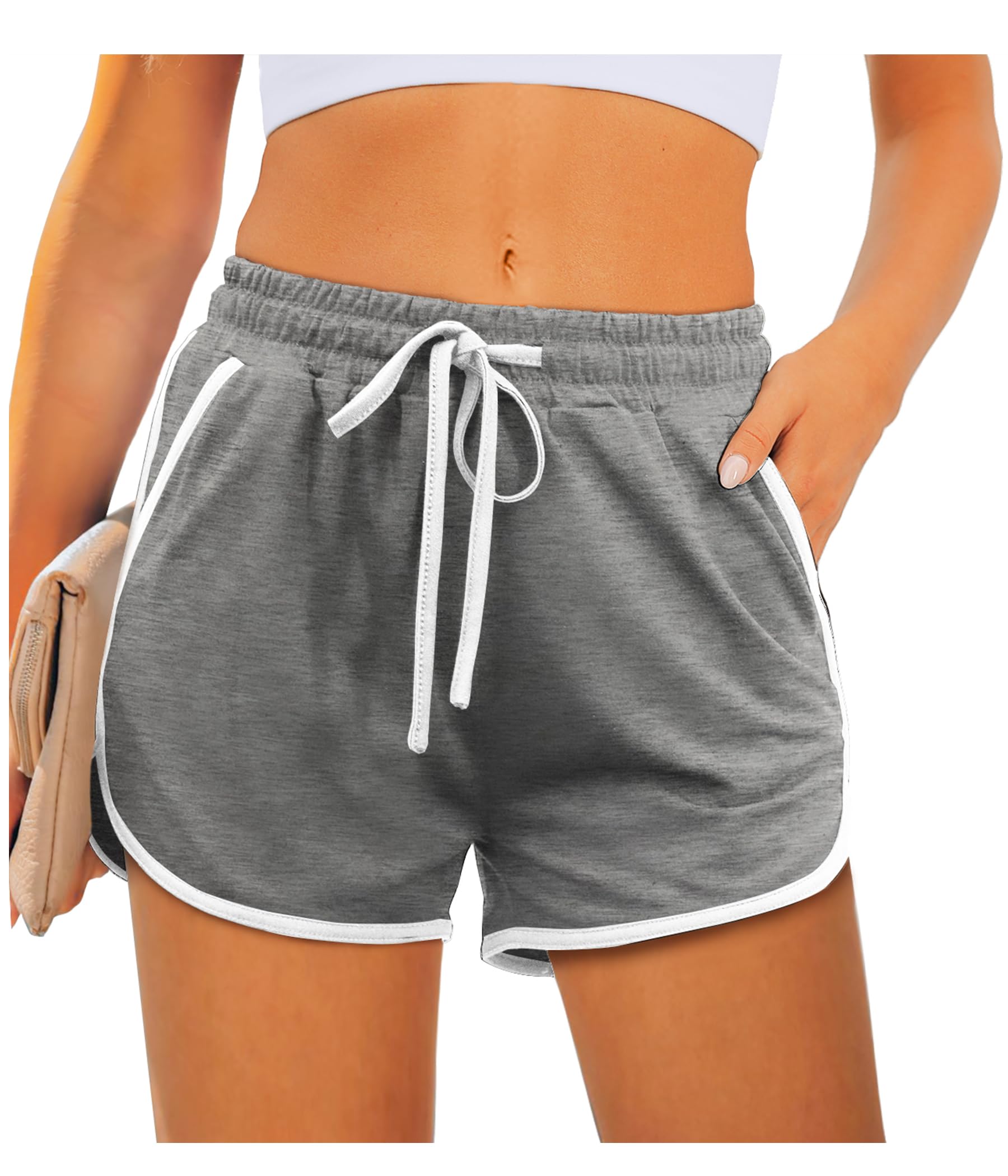 ✦Features:Classic dolphin design with elastic drawstring and fuction pockets.Suitable for all motion,Women's sports shorts are classic with a dolphin toe,and visually elongated legs. Elastic bands take the pressure off the waist. Be extra fashionable while doing your daily routine exercise with these high-quality shorts. When you are out for exercise or walking, you can put your cards, keys, and mobile phones in your pockets to facilitate your sports.