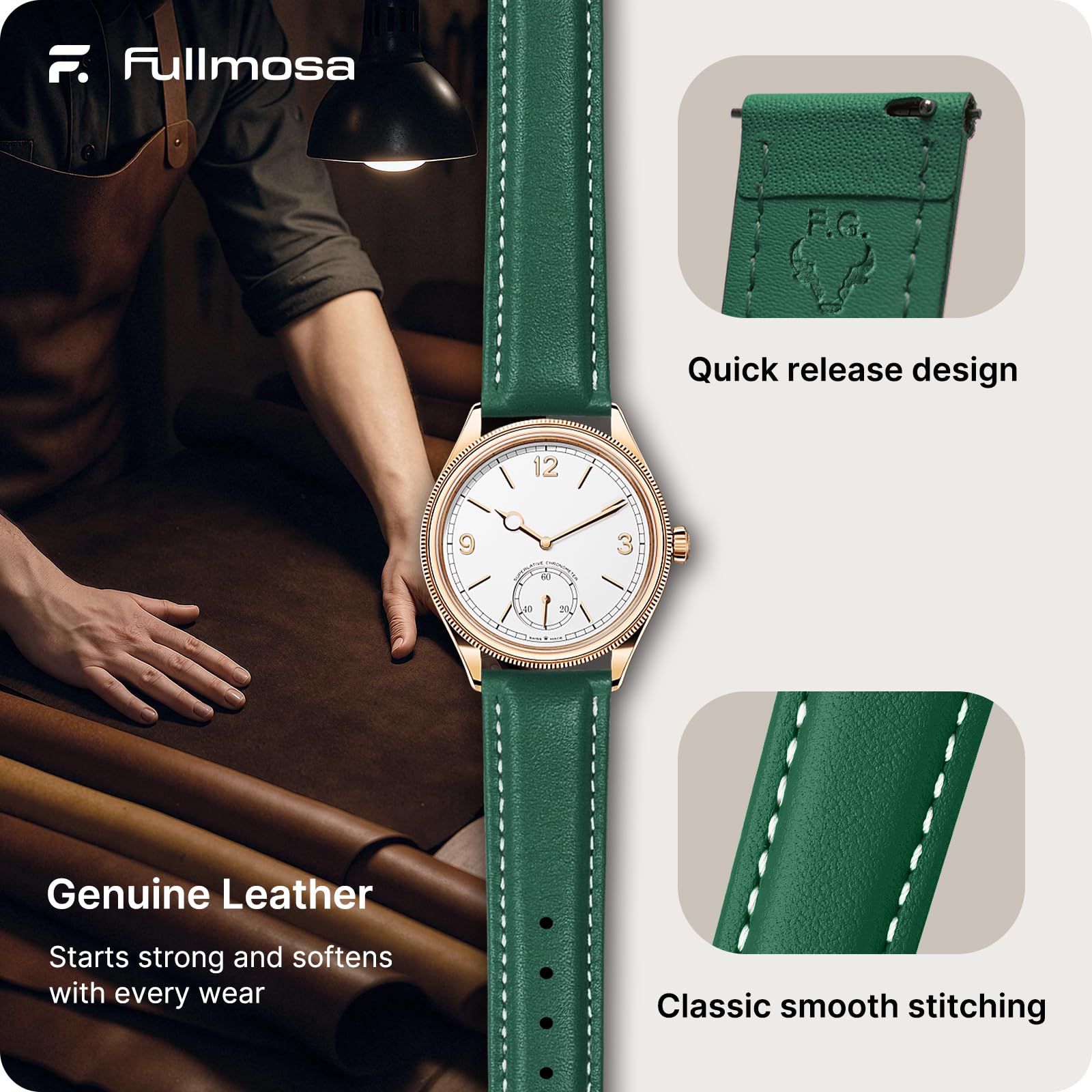 [High Quality Leather] The flexible genuine leather 22mm watch band makes watch wearing more comfortable. Thanks to the classic colour combination, your watch is suited for all occasions. Two cross stitched collars and a reinforced lining provide durability and dependability