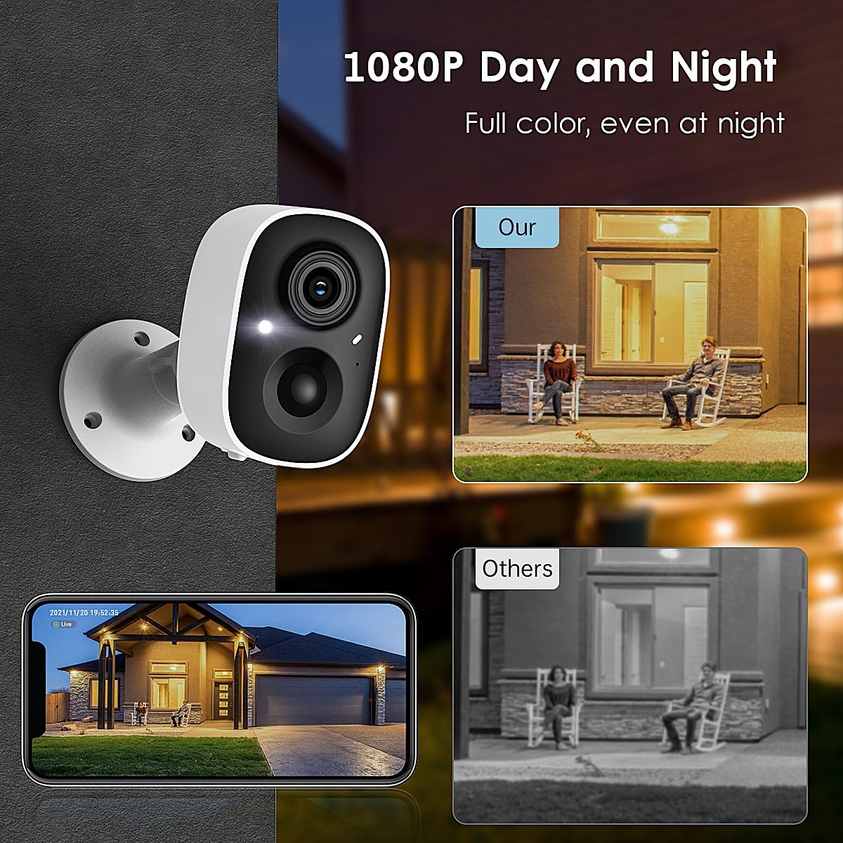 [Wire-Free & Non-Stop Solar Powered Outdoor Camera] This solar camera with true cordless design. No wire, no hassle. Sustainable solar powered and battery powered, no need to recharge again and again. Environmentally friendly and sustainable energy, inject a steady stream of electricity into your camera. Don’t need to climb the ladder to recharge the battery periodically. (*Not work with 5GHz WiFi)