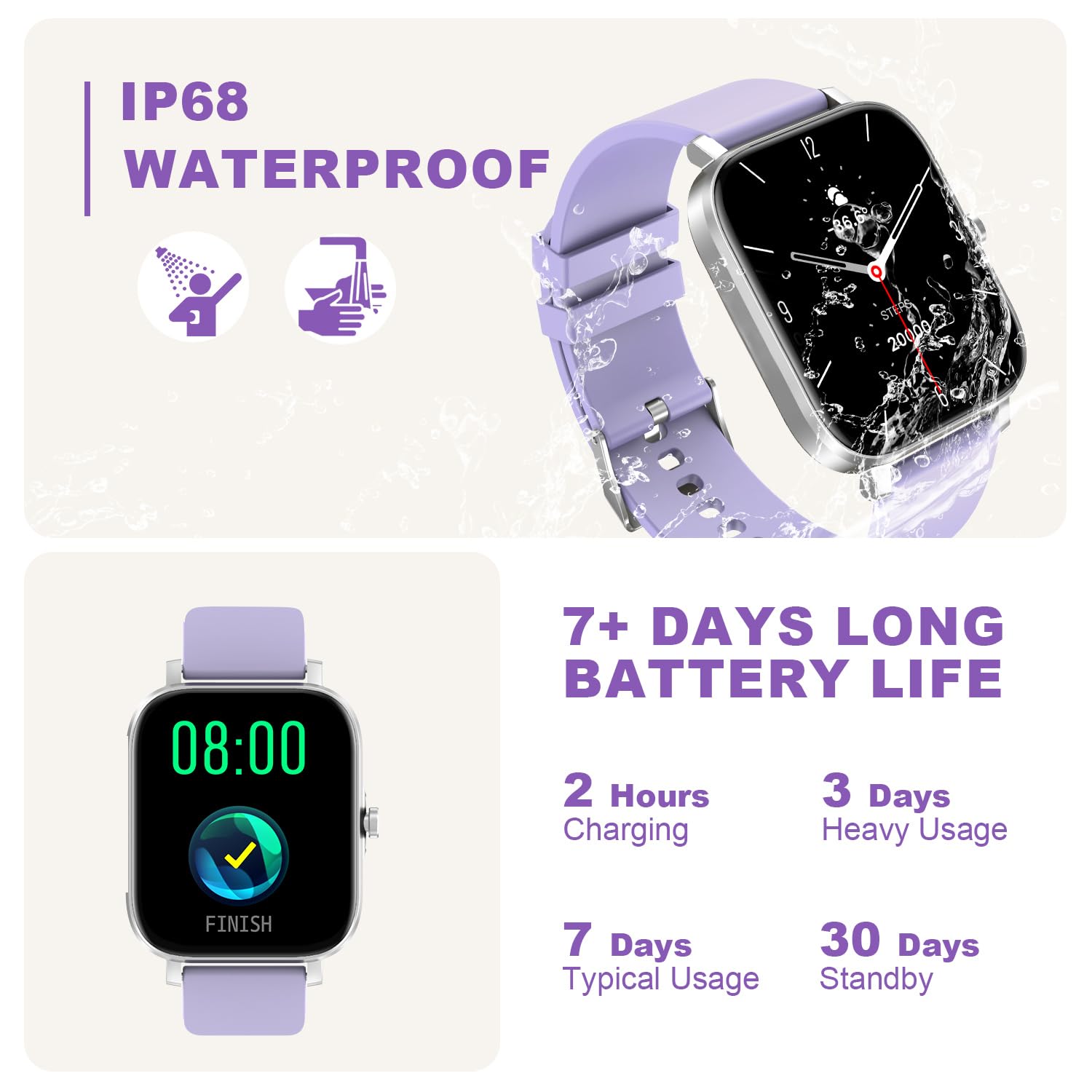 IP68 Waterproof: This activity trackers and smartwatche is designed with IP68 waterproof rating, so you can have no worries when washing your hands or swimming in the pool.At the same time, this fitness trackers for women man has 8 sports modes include walking, running. cycling, skipping, badminton, basketball, football, swimming.