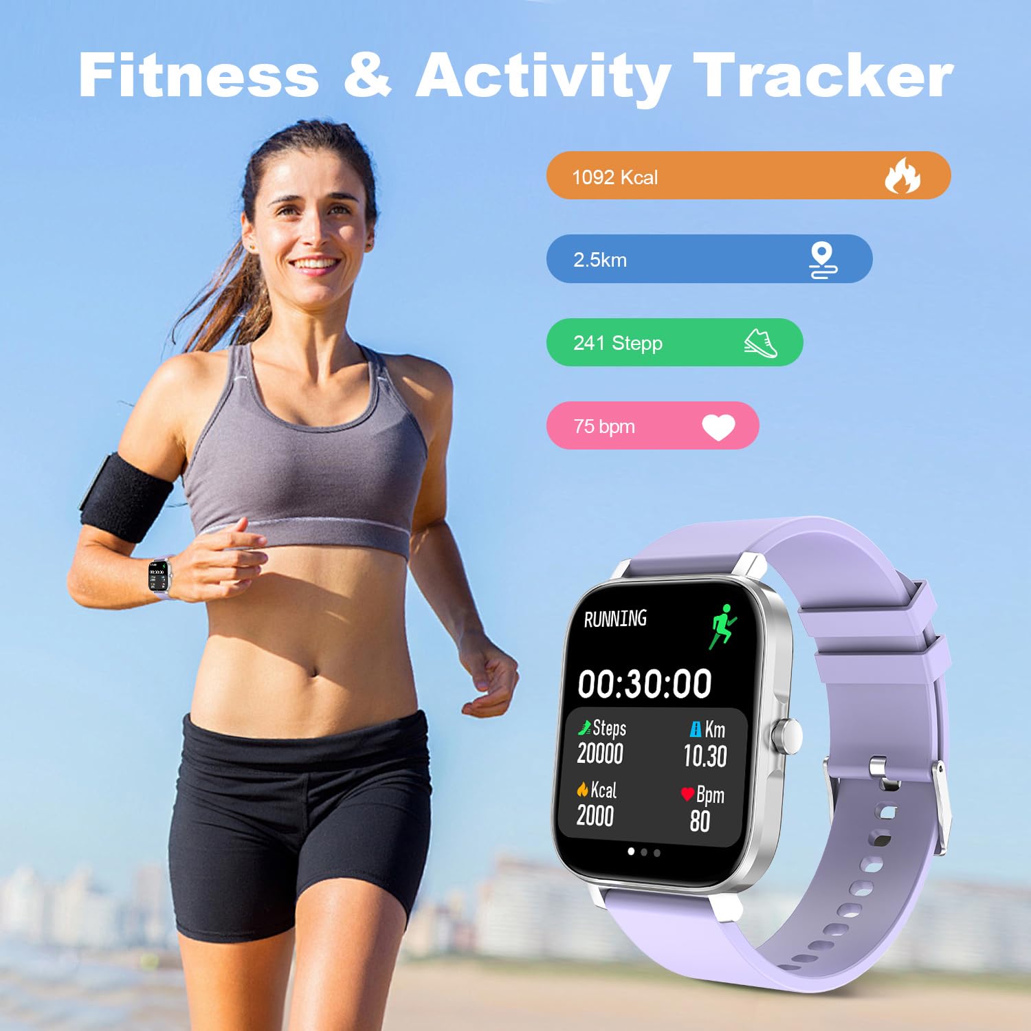 Heart Rate and Fitness Tracker: This mans womens watch includes more practical functions, Fitness Tracker watch (Pedometer, Calories, Distance), Heart Rate Monitor, Pressure Monitor, Sleep Monitor, Music & Camera Control, Weather Display, Sedentary Reminder, Alarm Clock, Stopwatch.