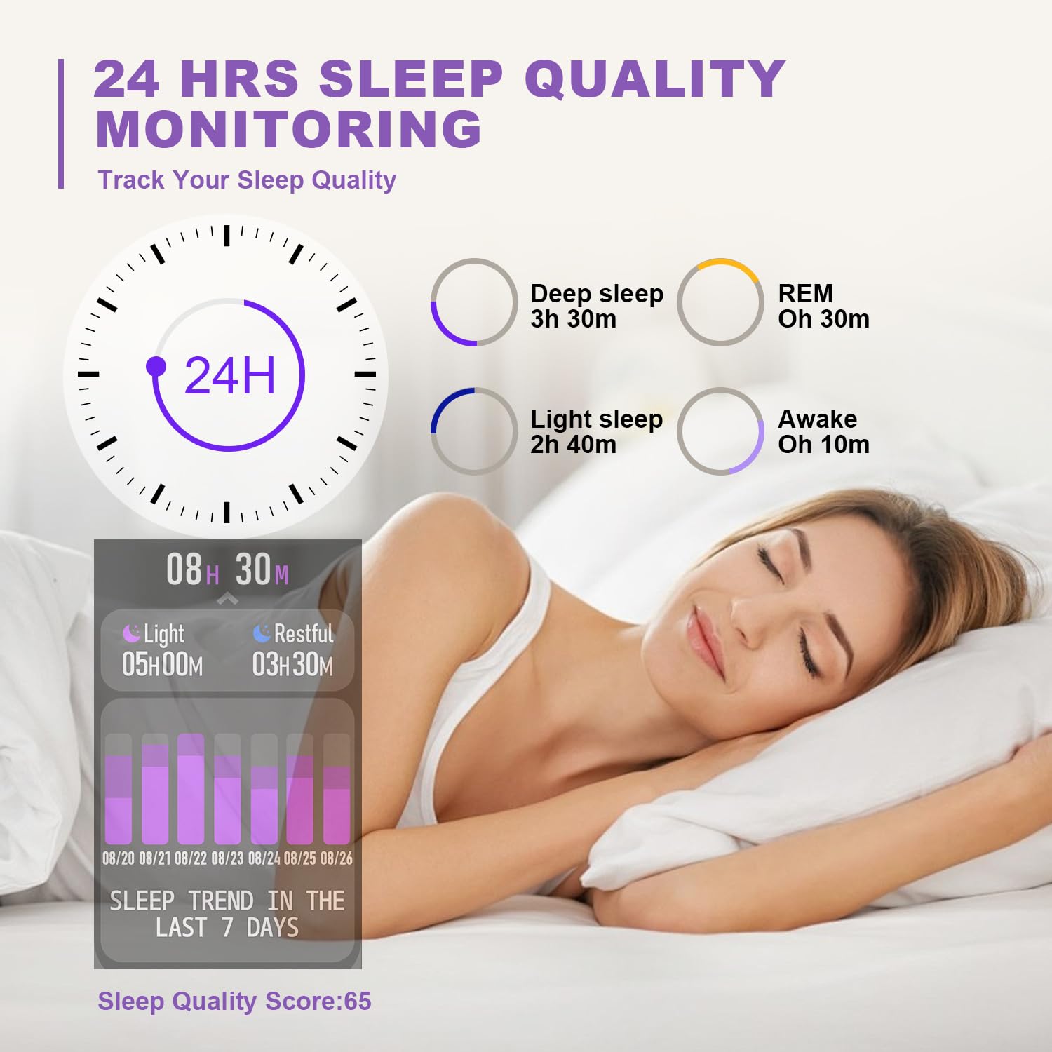 24 Hours Health Monitoring: This smart watch for man women features real-time heart rate monitoring,pressure monitoring, exercise recording and sleep monitoring, accurately records all-day activities such as steps, calories burned a fitness watch to monitor your health at all times.