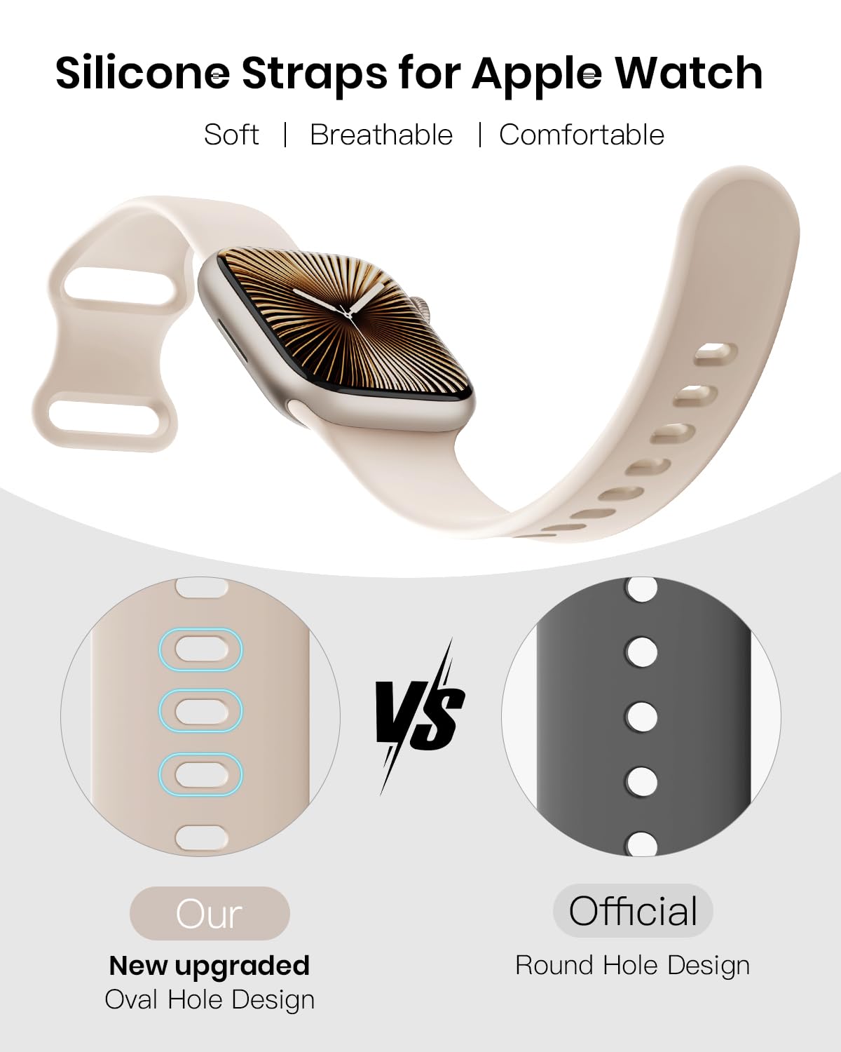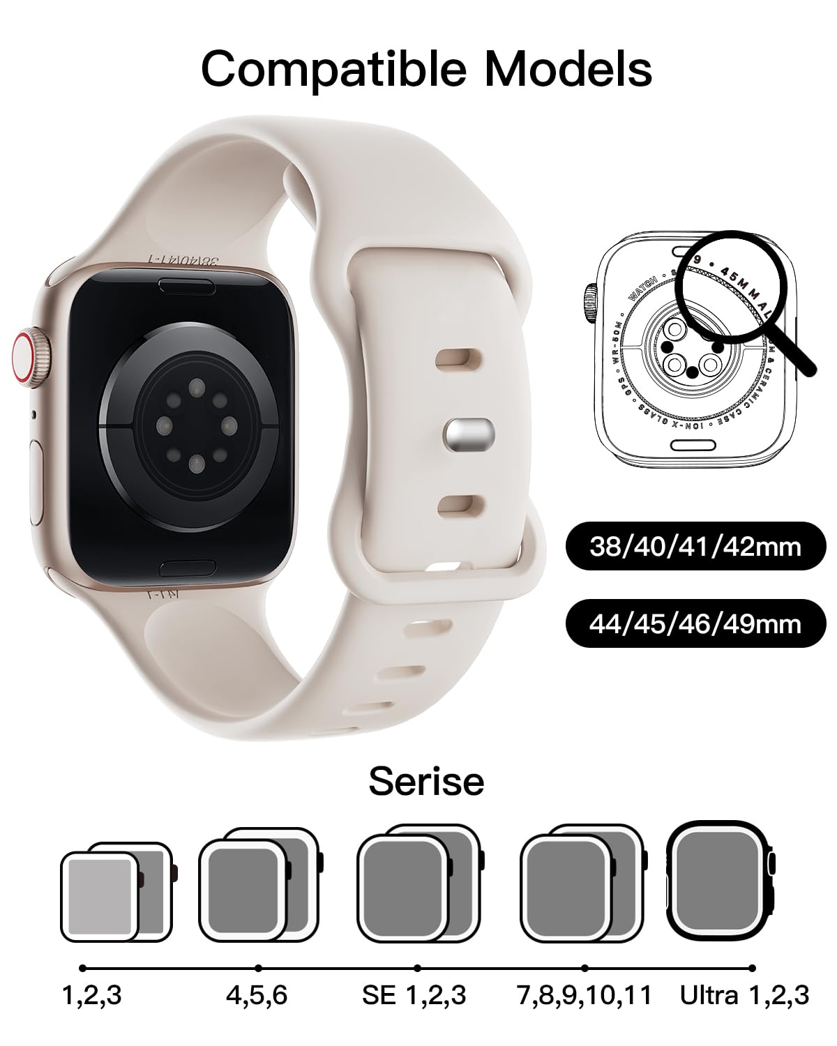 Comfortable to Wear: This iWatch Bands for women and men are made from soft, breathable, skin-friendly and long-wearing silicone, prevents skin from irritation, lightweight, touch comfortable, water-resistant and sweat-proof. Perfect for workdays, workouts and overnight sleep
