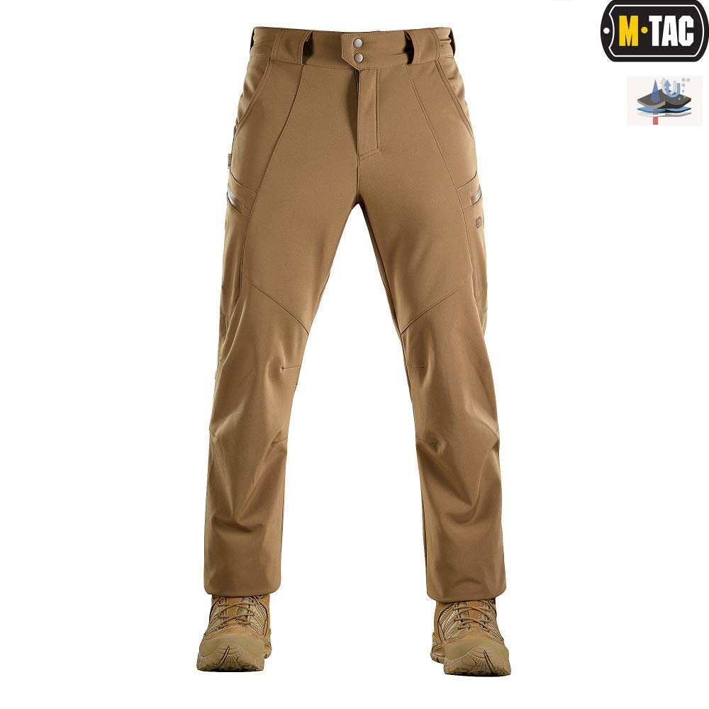 Description The M-Tac men’s winter tactical pants are built to keep you warm, dry, and mobile in cold weather. Featuring a three-layer softshell design with a water-resistant outer shell, insulating middle layer, and fleece lining, they provide reliable protection without bulk. Designed for versatility, these insulated pants work equally well as winter work pants, hiking pants, hunting gear, or ice fishing trousers. Six functional cargo pockets give you plenty of storage, while the high-rise waist prevents cold drafts. Lightweight yet durable, these fleece-lined pants are made for active movement in tough conditions - a dependable choice for outdoor work, training, or everyday wear in winter.