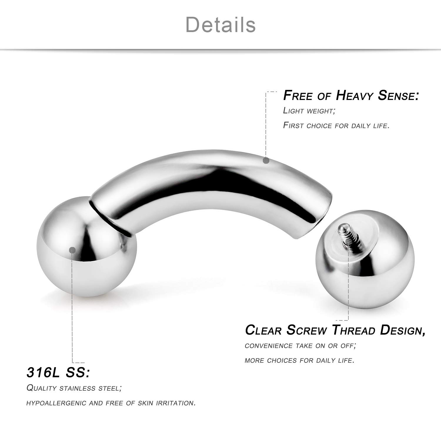 Includes 2PCS 316L Surgical Steel Bent Curved Barbell PA Ring,with Different Bar Length 1/2Inch(12mm) and 5/8Inch(16mm),Each Size One Piece.