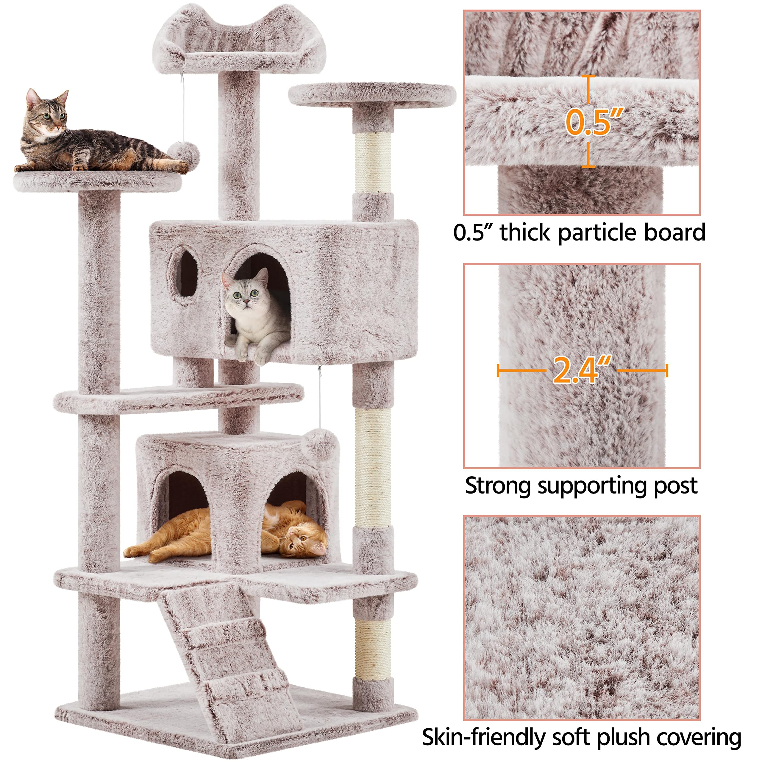 MULTI-LEVEL ACTIVITY PLAYGROUND: With a top perch featuring a cat-ear edge and two round platforms, your cats have the perfect observatories to "survey their kingdom." Two cozy condos and a bottom ladder are ideal for napping and fun climbing. Different height scratching posts help the kitten train muscles and stay healthy
