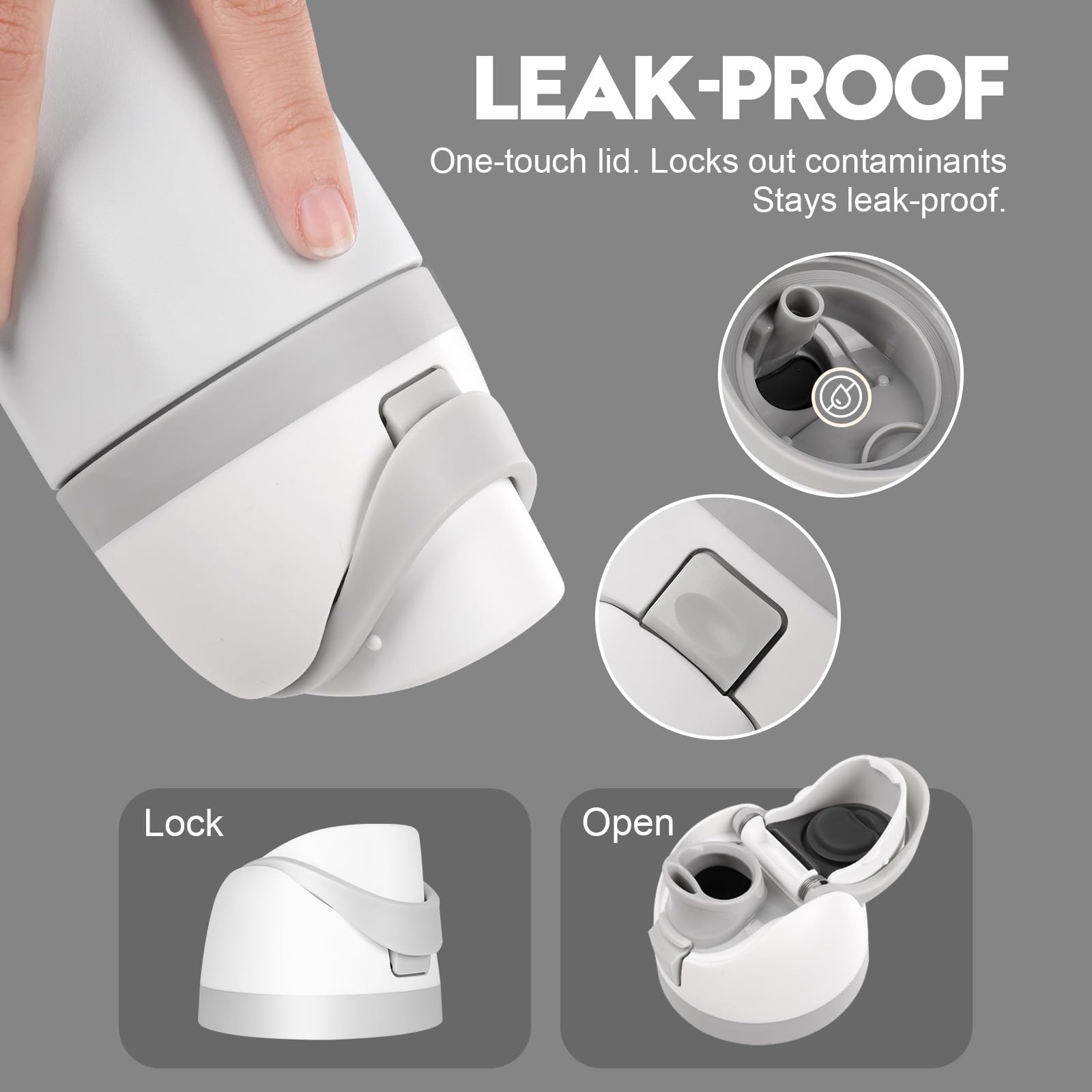 【Leak-Proof Design】Engineered with a precision seal, this lid effectively prevents leaks and spills. The secure closure allows you to confidently carry your bottle in a bag or backpack, ensuring worry-free portability.
