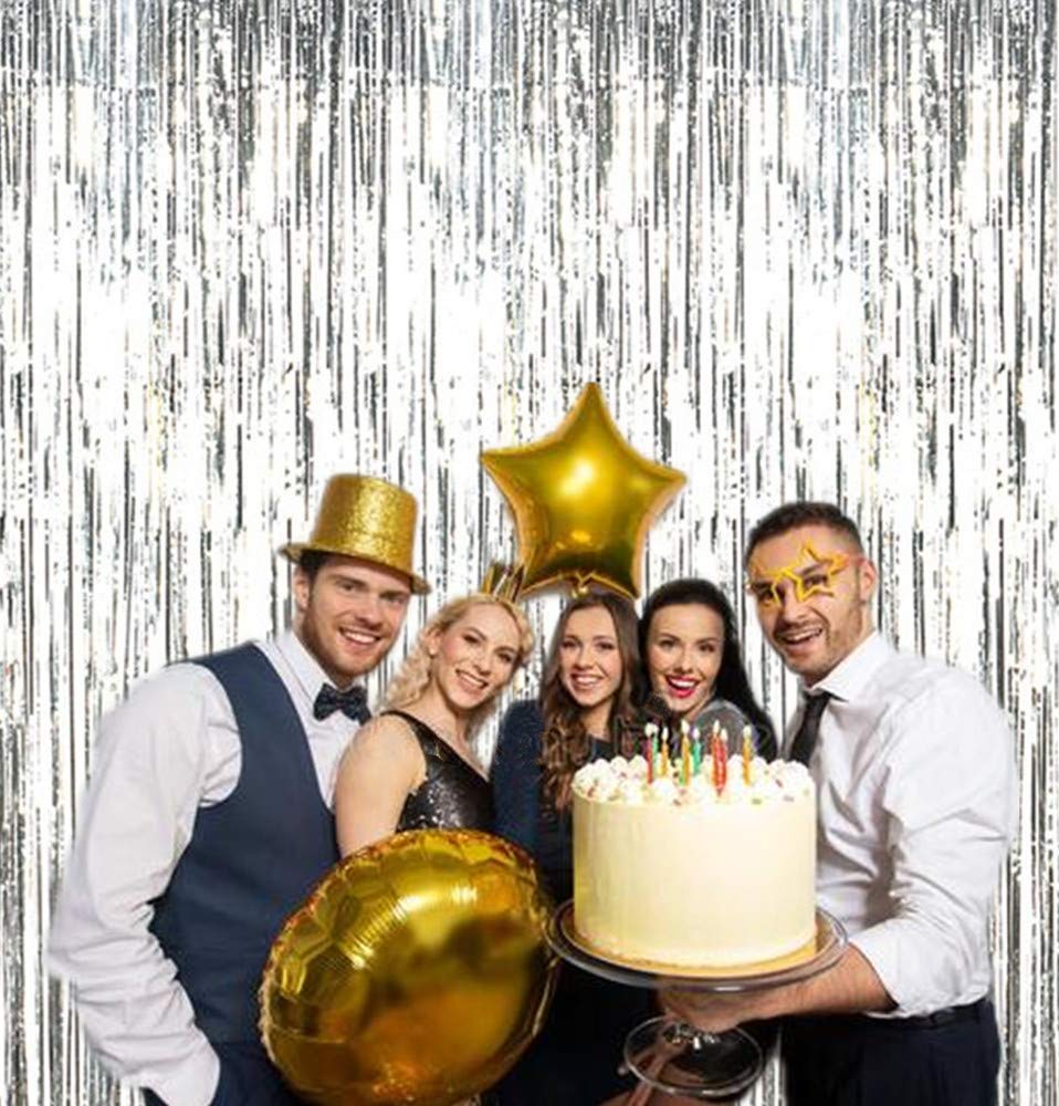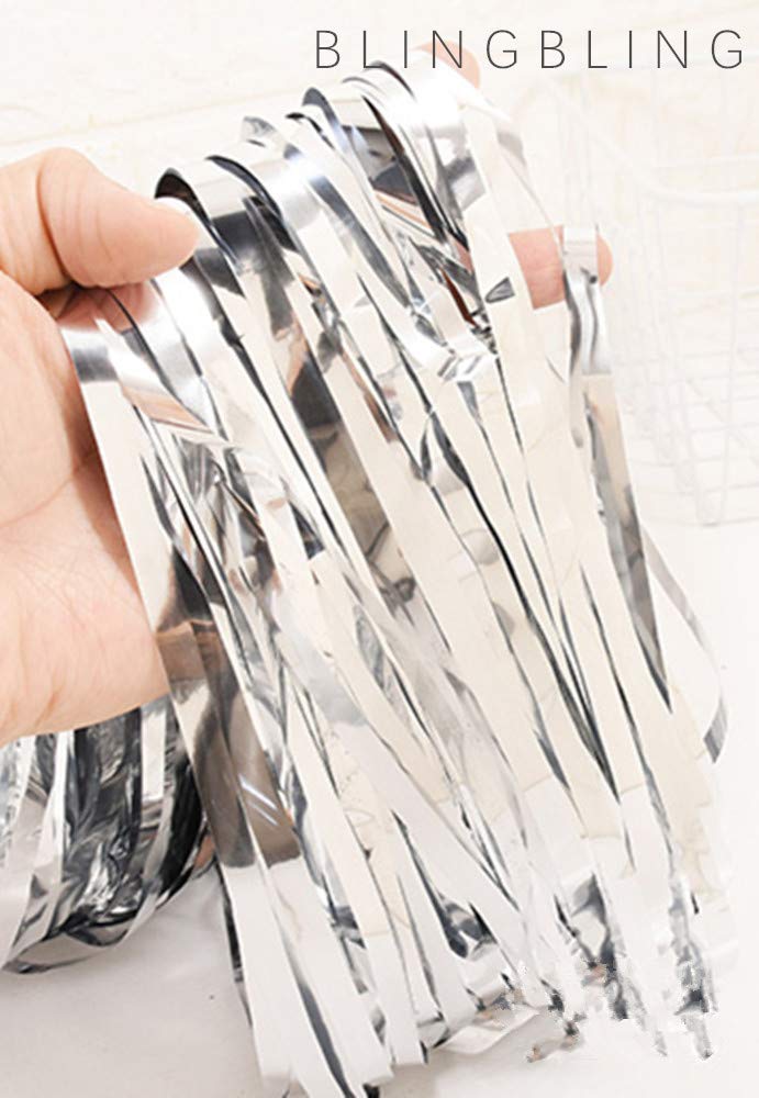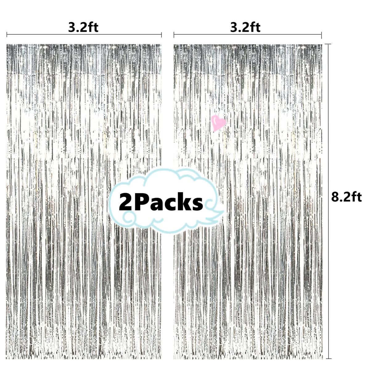 【Silver Foil Fringe Curtains】: Value Pack of 2, each curtains size 3.2 feet (W) x 8.2 feet (L).Can be used for background walls, any doorways, windows, etc