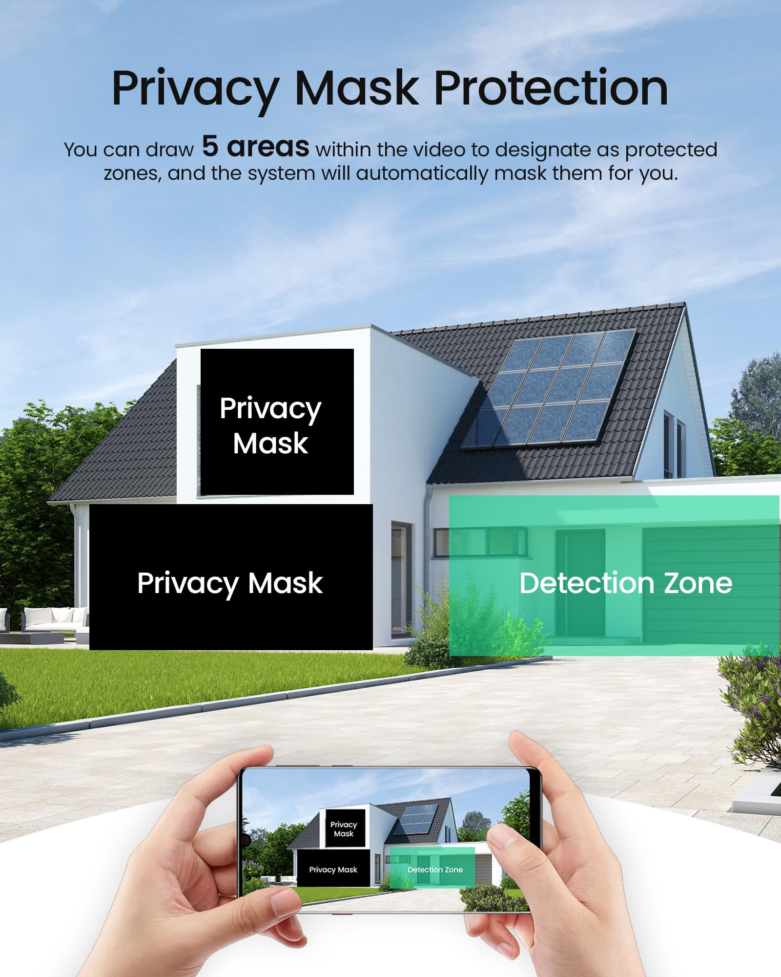 This cctv camera security system incorporates privacy considerations. If certain areas within the monitoring range are sensitive to your privacy, you can designate them as privacy zones within the app. The system will then mask these areas, effectively safeguarding your privacy. Additionally, the security system can track foot traffic in each monitored zone over specific time periods. If you use our security system in locations like shopping malls or supermarkets, this data can also assist you in making informed business decisions.