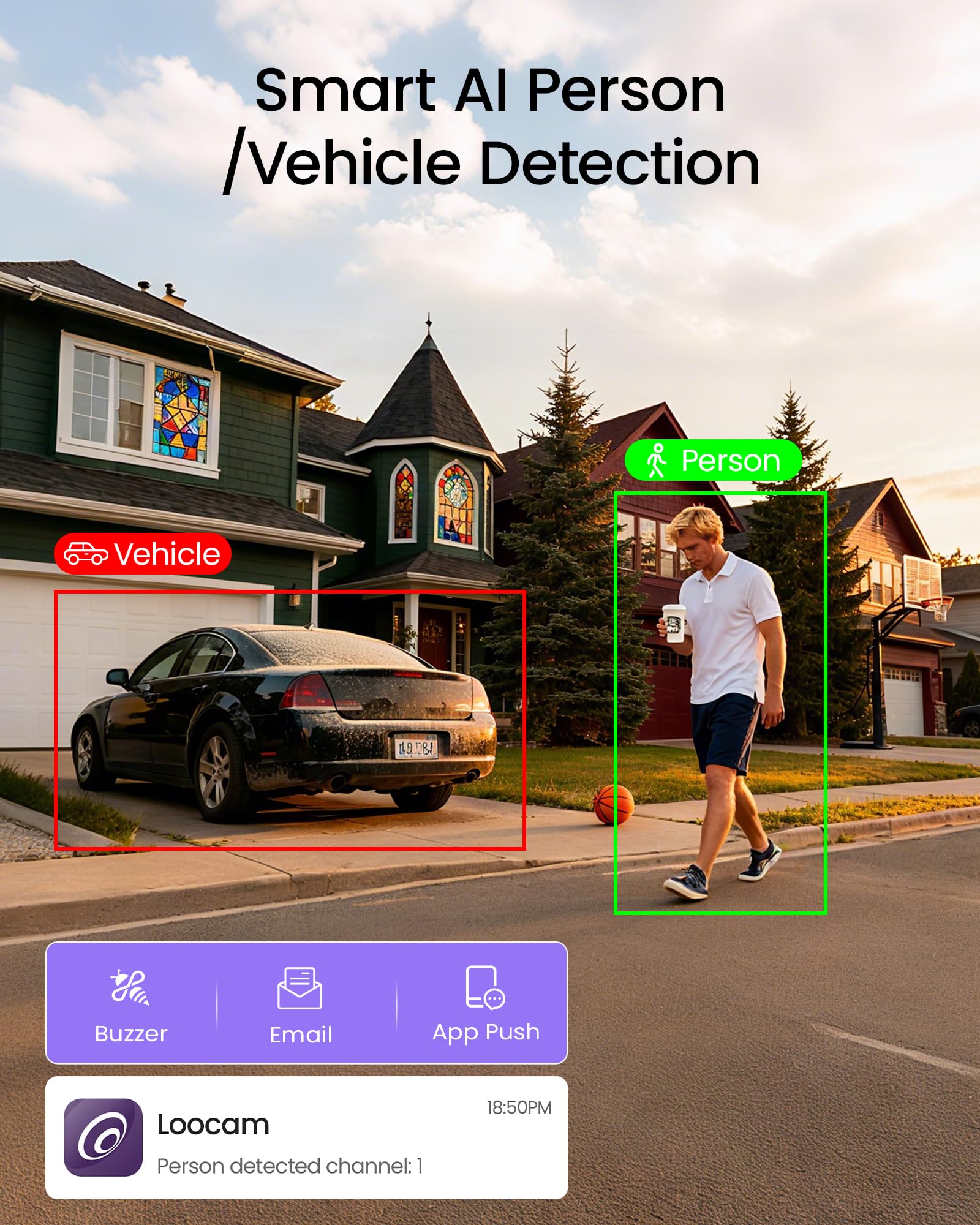 Loocam 4K PoE Security Camera System is a robust all-in-one solution for diverse scenarios including homes, retail stores, and small businesses. Equipped with 8 IP66-rated weatherproof cameras, it supports 8MP ultra-high-definition resolution and features 24/7 recording capabilities (3 intelligent modes, infrared illumination up to 30 meters). Powered by advanced AI detection technology, it accurately tracks crowds and moving vehicles to capture any anomalies.