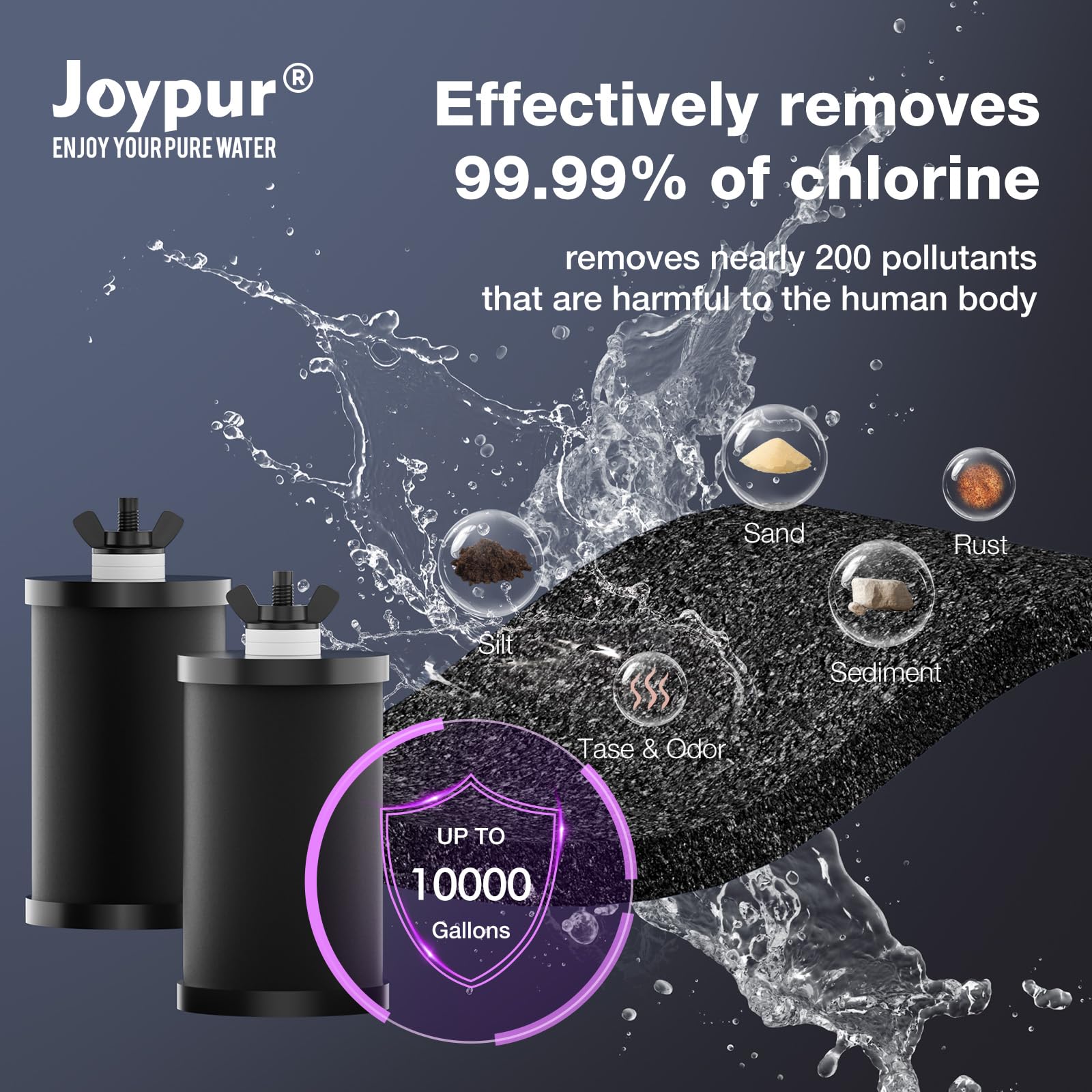 [Life span] Joypur countertop water filtration system includes 2 new upgraded black carbon filters, effectively treating up to 10,000 gallons of water (5,000 gallons for a single), increasing the diameter and wall thickness of the filter element to make it more fully in contact with the water, and the high filtration performance ensures that up to 80,000 plastic bottles (500 ml) can be reduced in 3 years in every household, contributing to a low-carbon environmental protection.