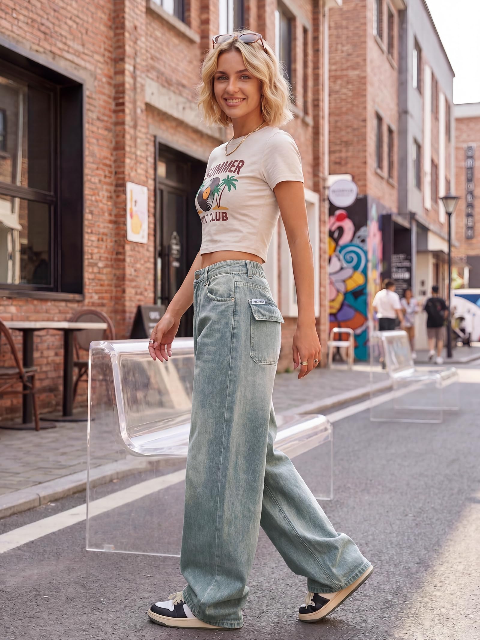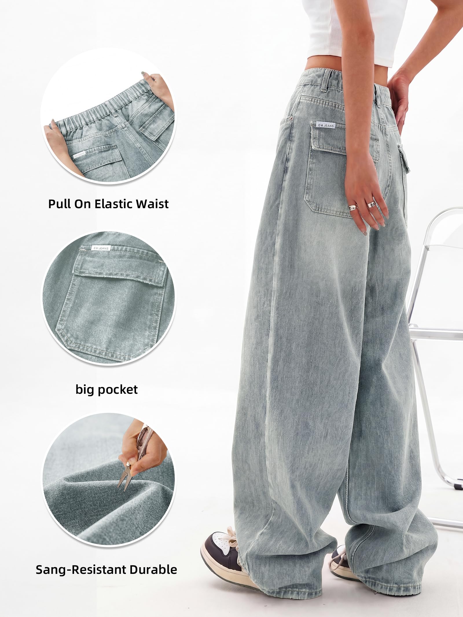 Boyfriend jeans for women come with 4 traditional pockets. Intentionally distressed design in the pockets' edges, providing these women's jeans with both style and function. Y2k baggy jeans with zip fly, button closure and belt loops for your ease of use.