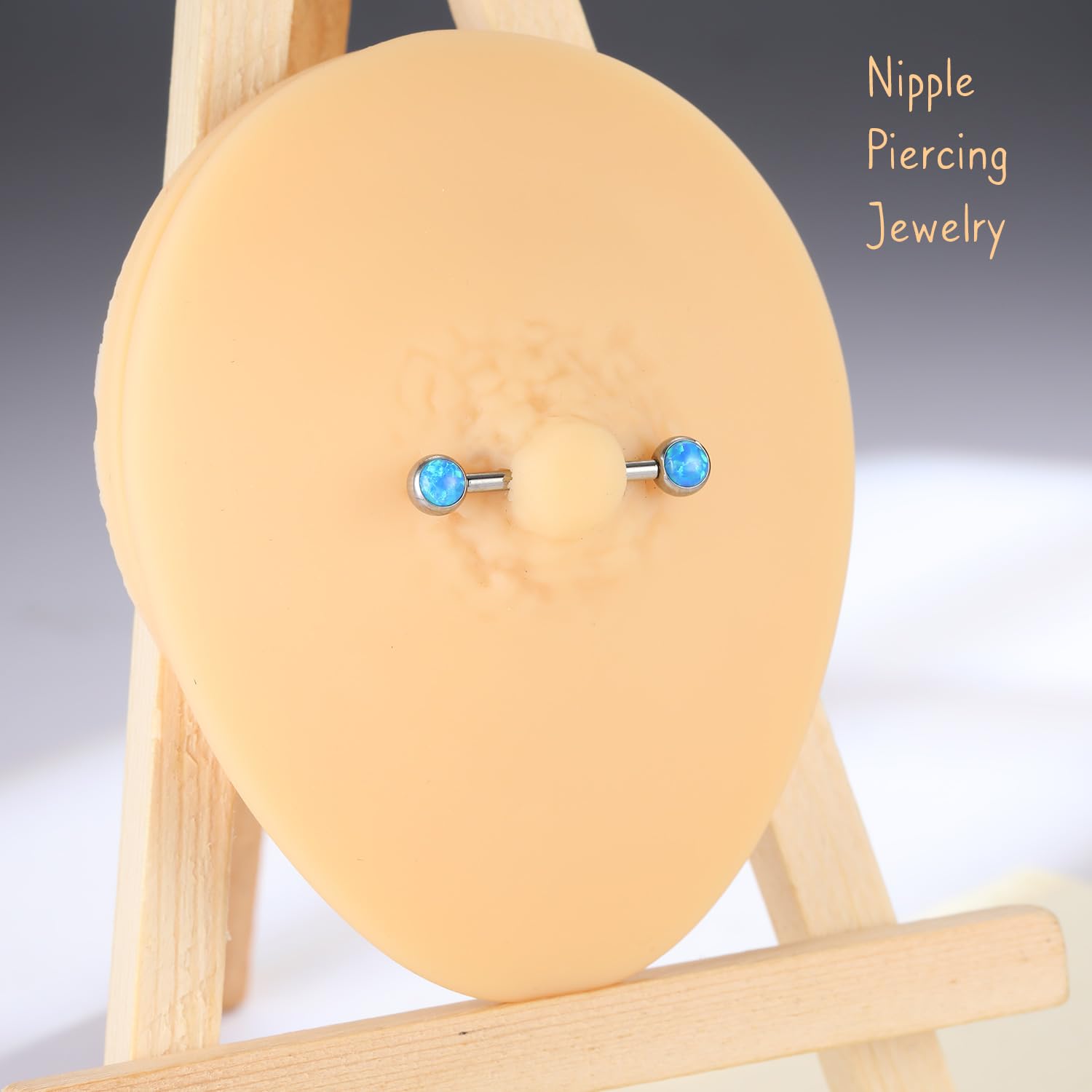 Unique Design: The nipple piercing jewelry with shiny opal on both side, to make your nipple piercing more charming