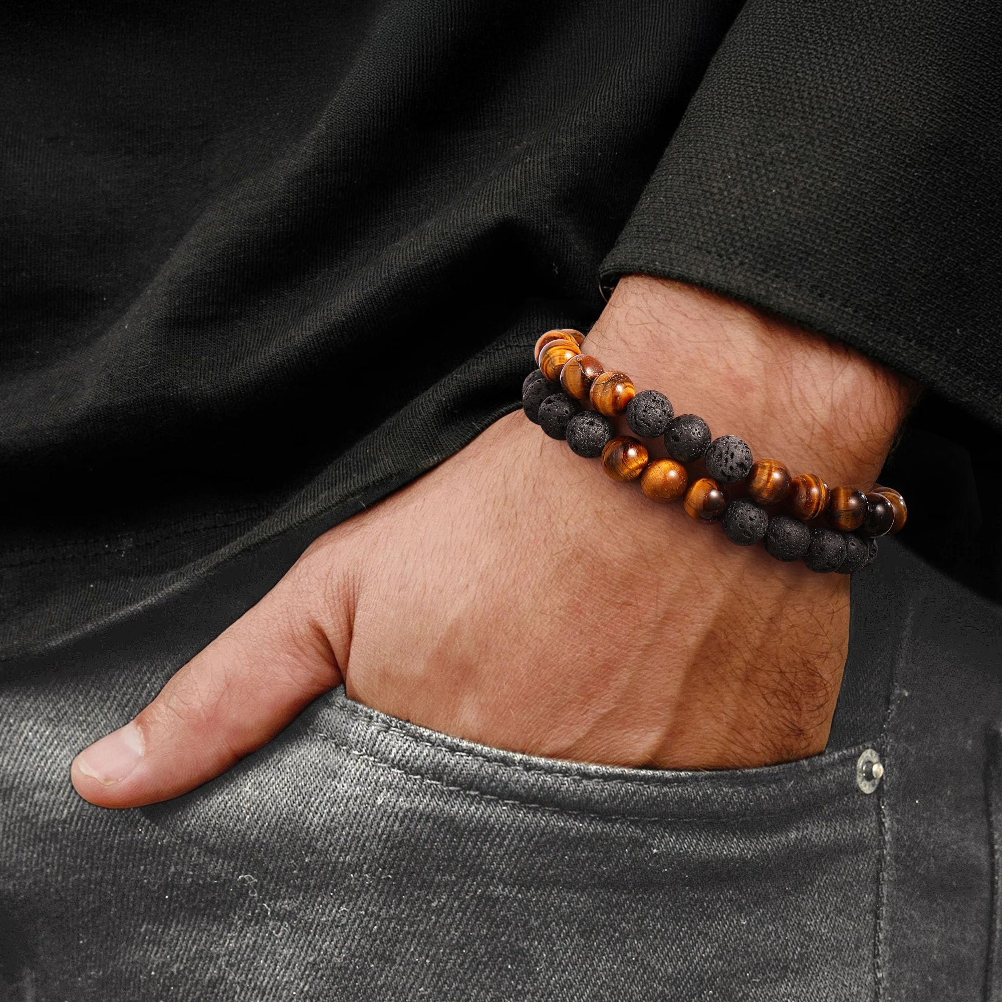MEN BRACELETS: 8mm Natural stone bracelets, designed for pilate, yoga, essential oil diffuses. Historically, these stones were always worn as amulets among the ancient civilians. The prime quality bracelet is for the closest person. This will surely be a unique gifts for men. It will bring him good wishes.